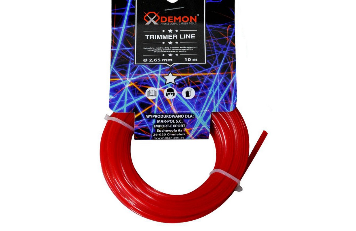 Pļaušanas līnijakrūmgriežiem un elektriskajiem trimmeriem. Monopavedienupiecstūra šķērsgriezums,ar diametru2,65 mmun garumu10 m,izgatavots no izturīgas plastmasas.
