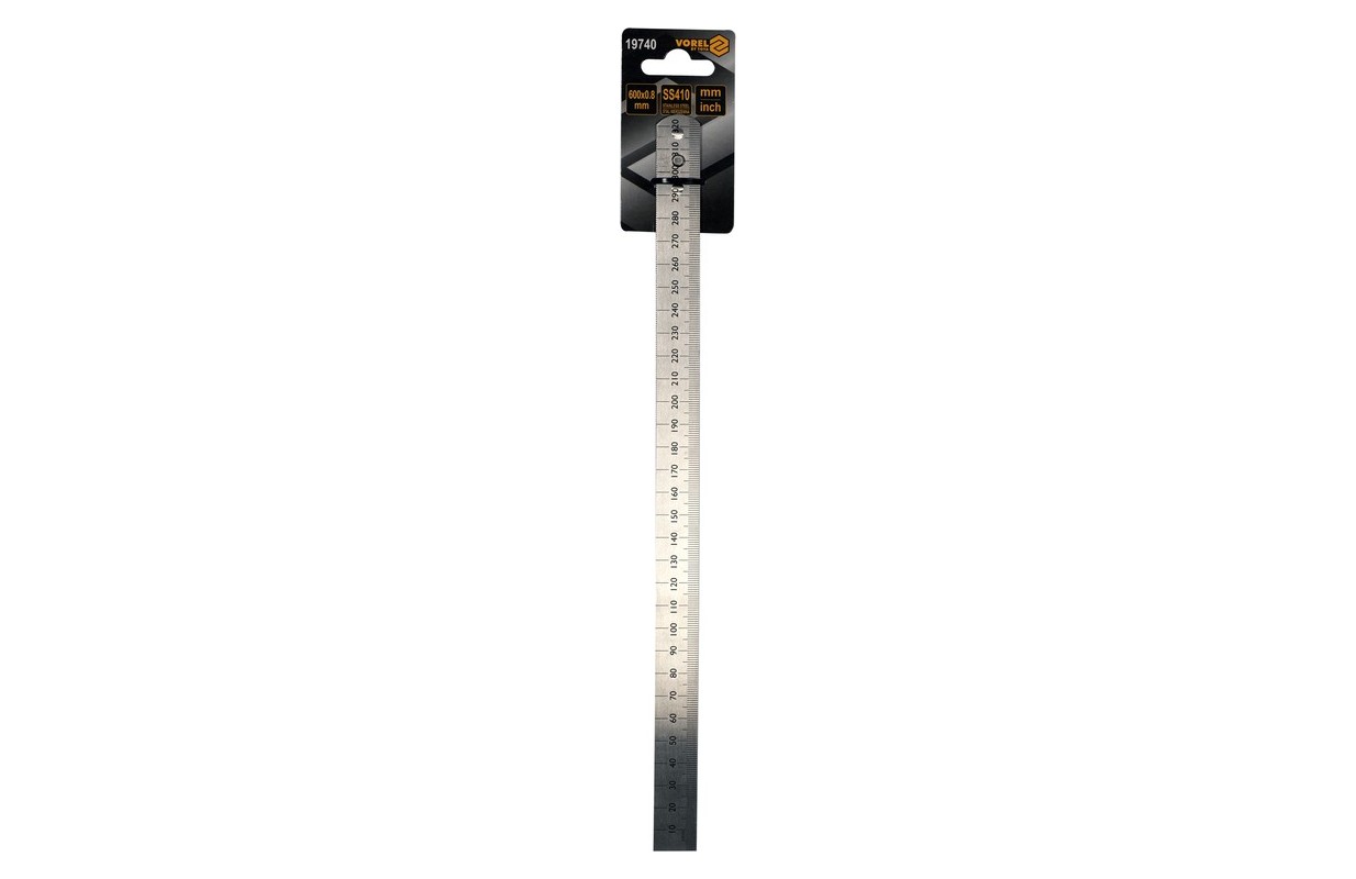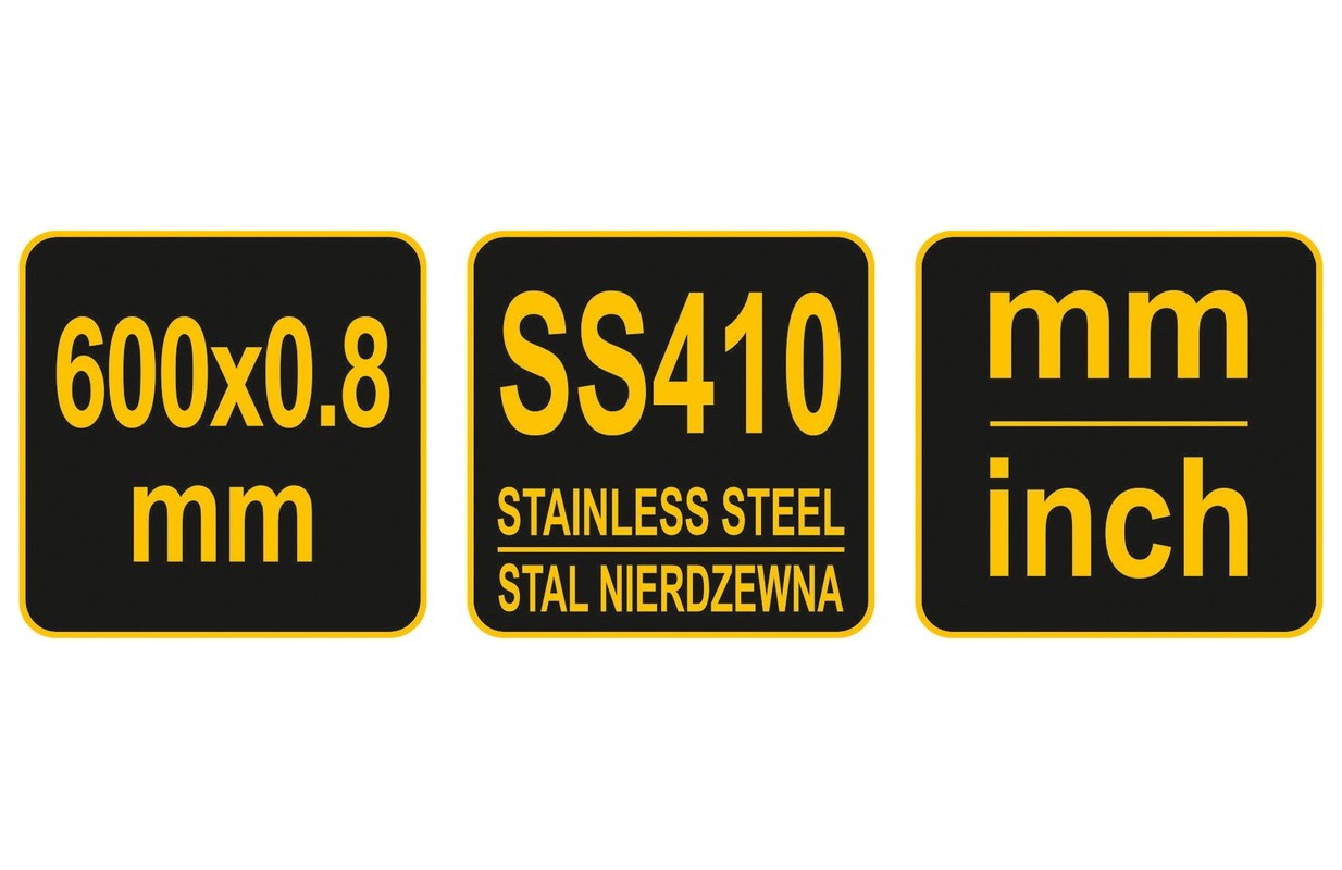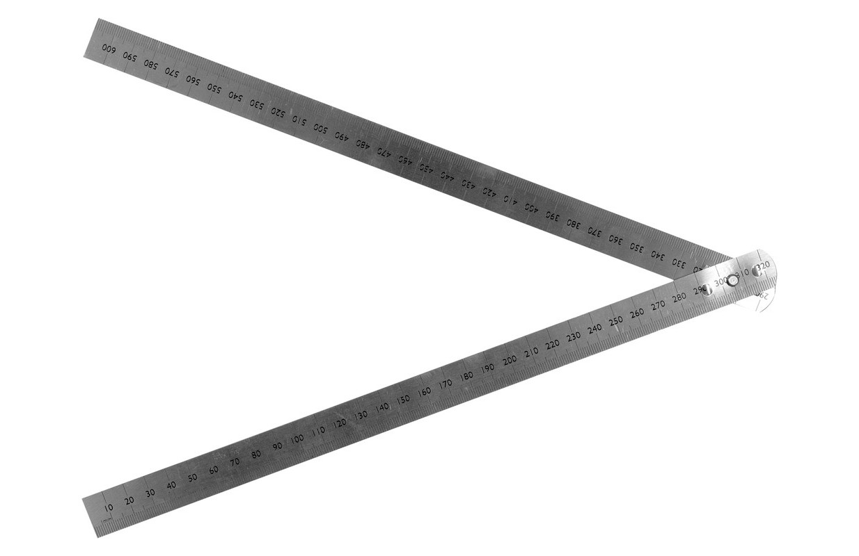 Metāla lineāls no nerūsējošā tērauda, salocīts no diviem segmentiem. Pagarināts garums 610 mm. Lineāla apakšējā mala ir pastāvīgi marķēta ar milimetru skalu, bet augšējā mala ar centimetru skalu. No otras puses - collu mērogs līdz 23 collām. Sliedes ir savienotas ar tērauda kniedēm. Viņiem ir stabils fiksators. Salocīti izmēri 2 x 300 mm, platums 19,2 mm, biezums 0,5 mm.
