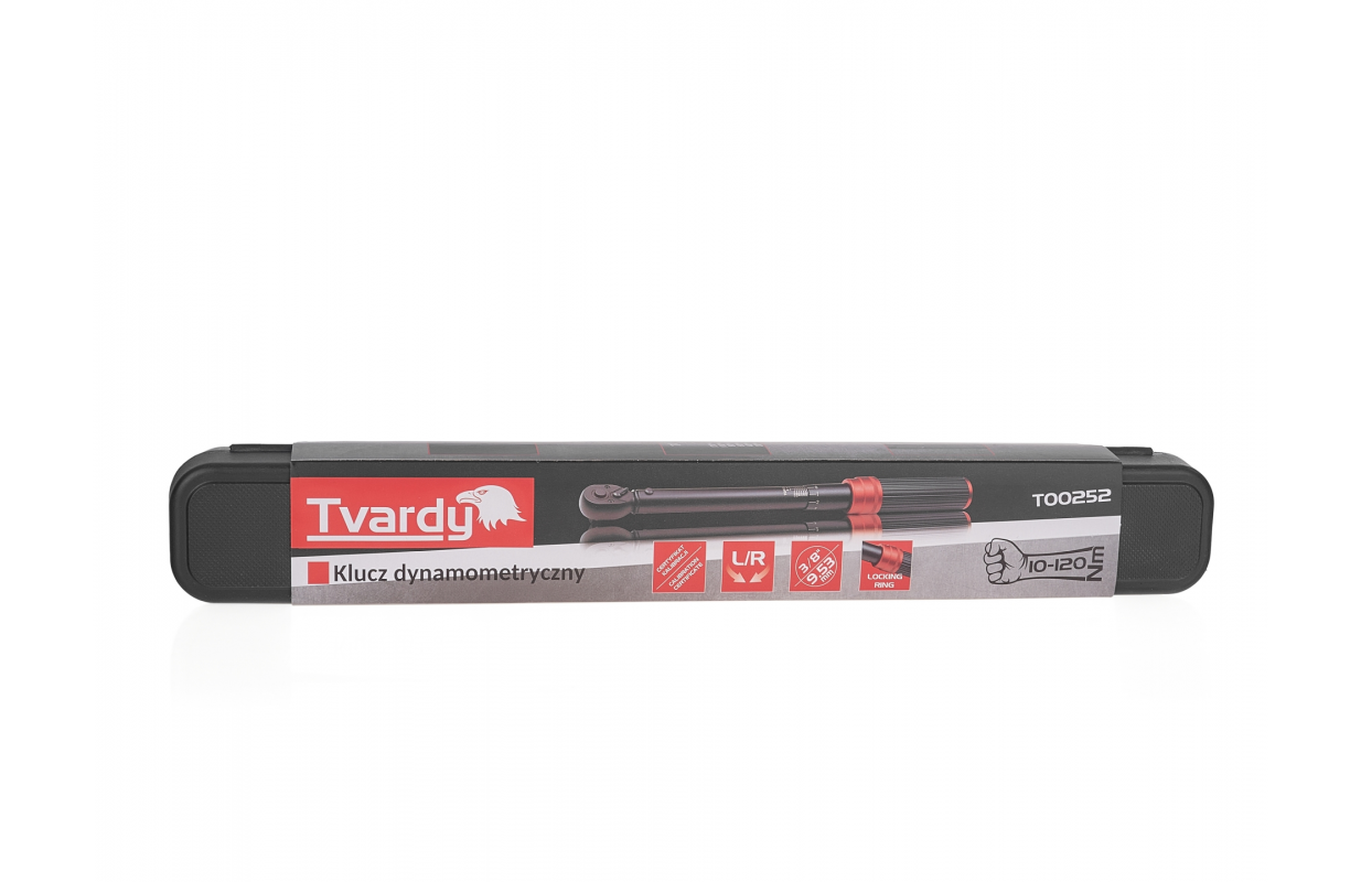 Tvardy3/8" griezes momenta uzgriežņu atslēga ir profesionāls instruments, kas ļauj precīzi pievilkt skrūves un uzgriežņus ar precīzi definētu spēku. Ar pievilkšanas spēka regulēšanas diapazonu no 10 līdz 120Nm (7.4-88.6 lbf.ft), tas ir ideāli piemērots lietojumiem, kur nepieciešama precizitāte. Mūsu griezes momenta uzgriežņu atslēga izceļas ar spēju rīkoties ar skrūvēm gan ar labo, gan kreiso vītni.