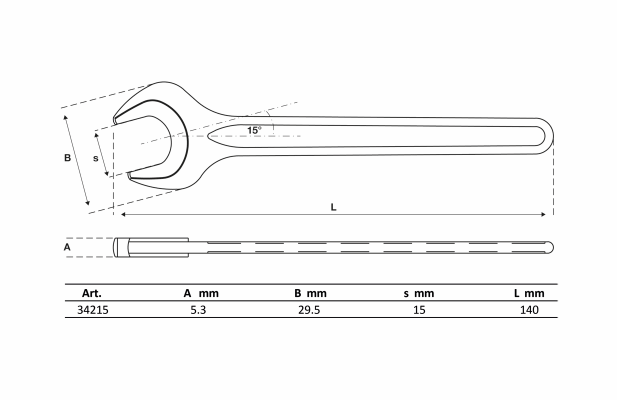 Vienpusēja uzgriežņu atslēga 15 mm (34215)