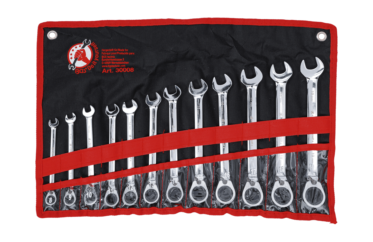 Sprūdrata uzgriežņu atslēgu komplekts | atgriezenisks | 8 - 19 mm | 12 gab. (30008)