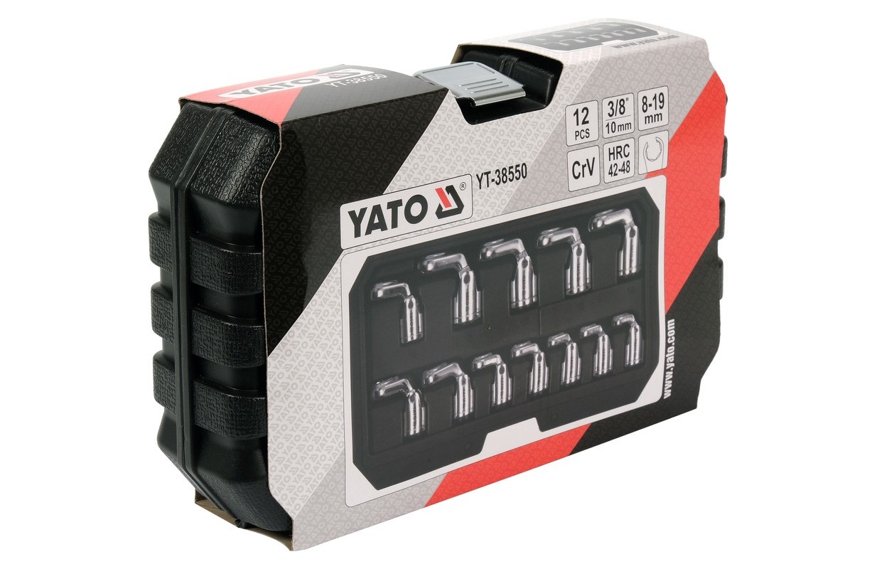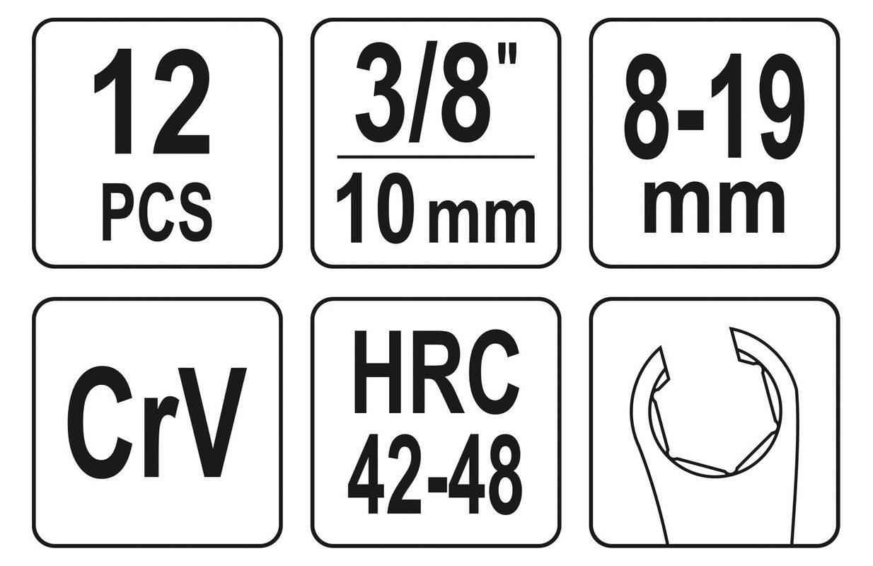 Rotējošo uzgriežņu atslēgu komplektā 3/8 collu ir 12 daļas (YT-38550)