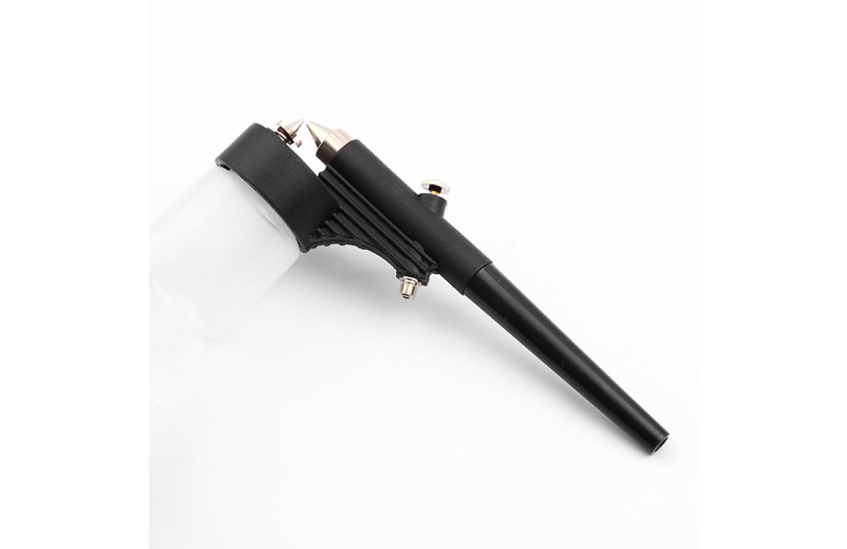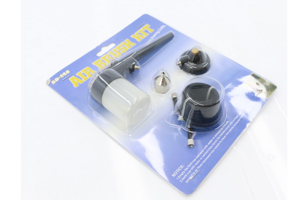 Iesācēja līmeņa aerogrāfs fonu un gruntskrāsu uzklāšanai. Plastmasas futrālis.