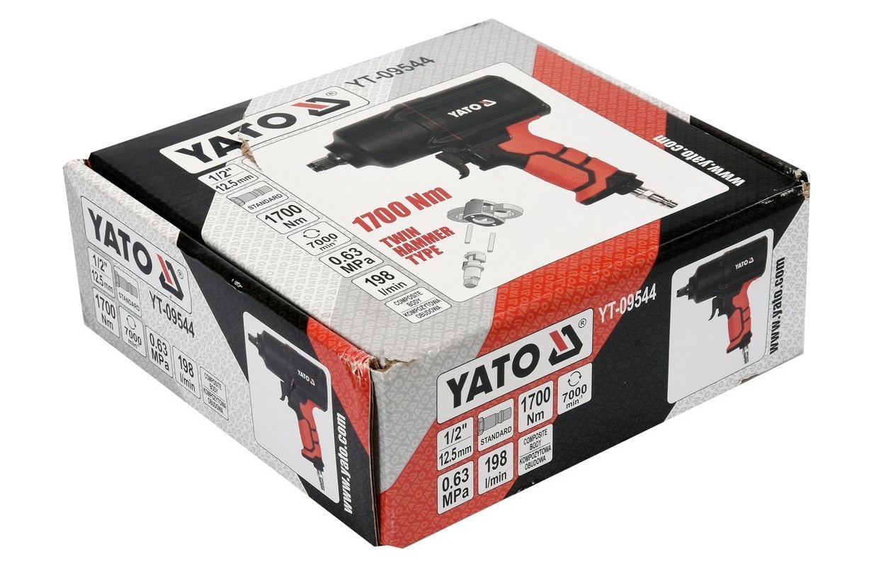 YT-09544 ir 1/2" pneimatiskais uzgriežņu atslēga, ko darbina saspiests gaiss ar 6,3 bāru spiedienu. Paredzēts uzgriežņu un skrūvju atskrūvēšanai/ atskrūvēšanai dažādu veidu darbnīcās. Tas ir lieliski piemērots automobiļu pakalpojumu sniegšanai, piemēram, automašīnu un piegādes transportlīdzekļu riteņu montāžai/demontāžai.