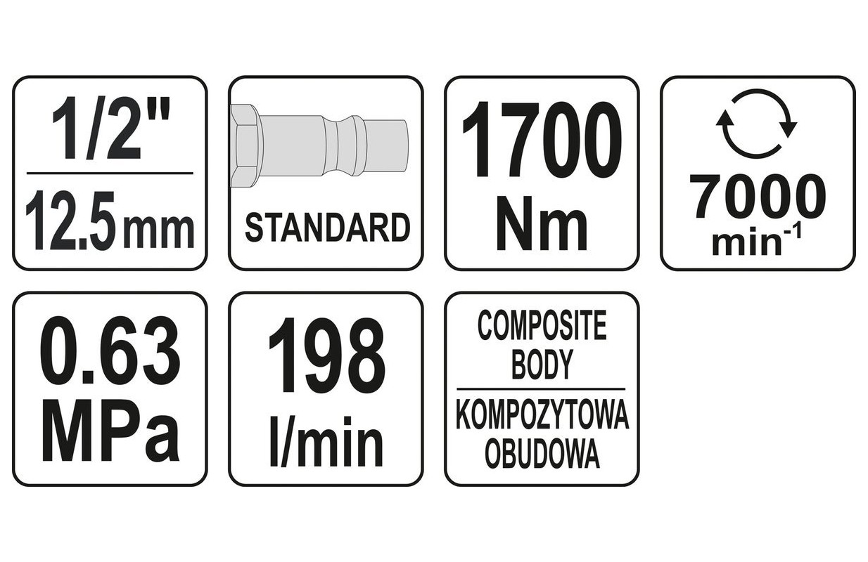 Pneimatiskā triecienatslēga 1/2" 1700 Nm (YT-09544)