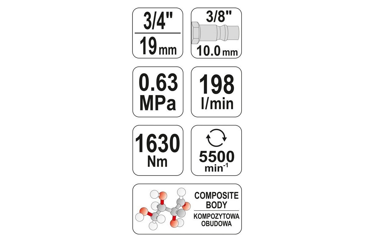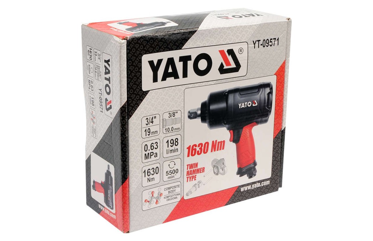 Pneimatiskā trieciena atslēga 1630 Nm, 3/4 "," Yato "(YT-09571)