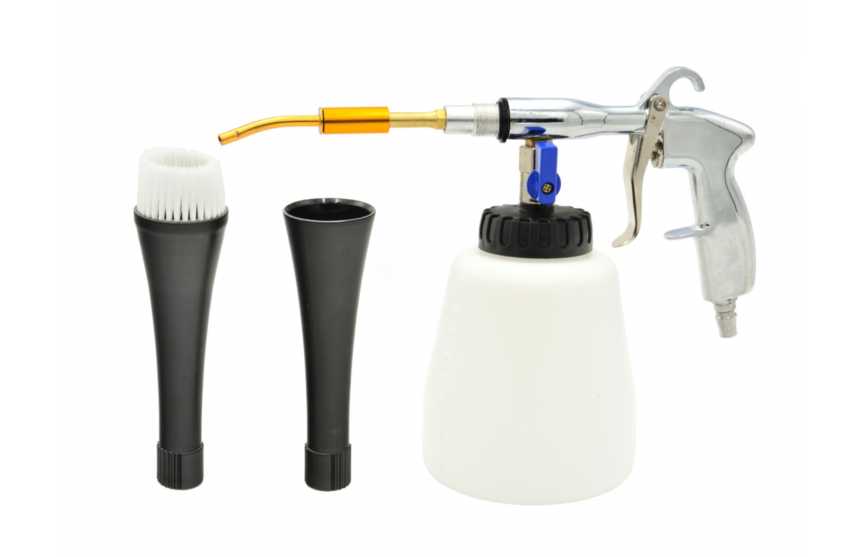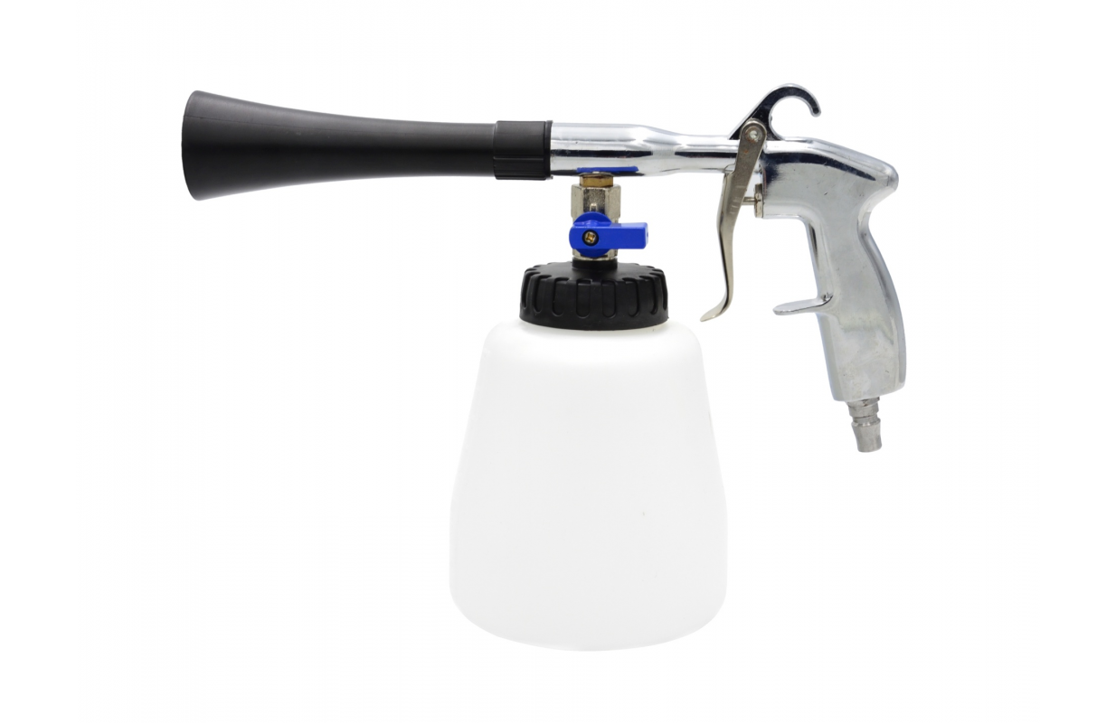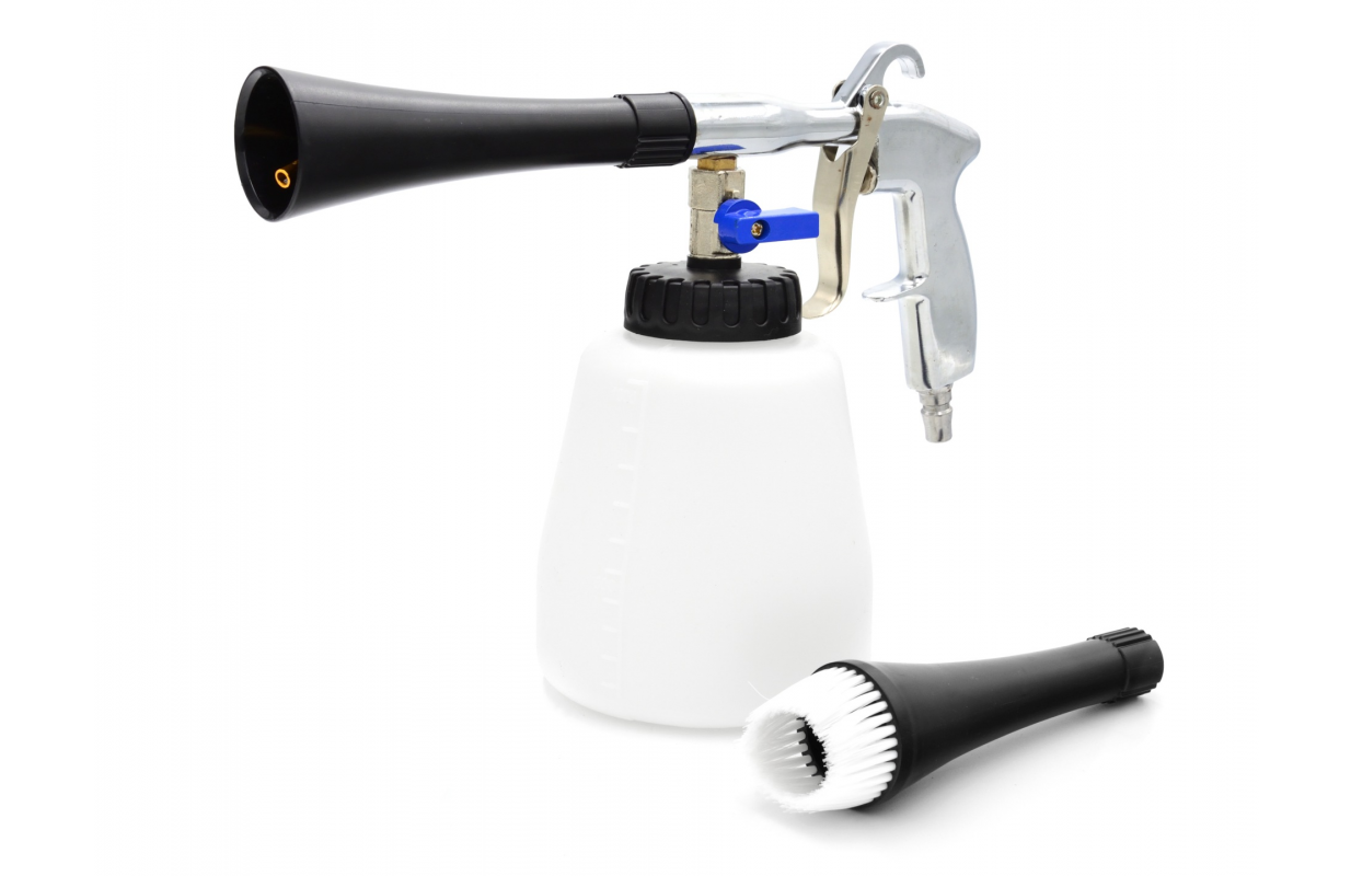 TORNADOR ir ļoti efektīva profesionāla pneimatiskā ķīmiskās tīrīšanas pistole, kuru darbina saspiests gaiss no parastajiem mājsaimniecības vai rūpniecības kompresoriem.