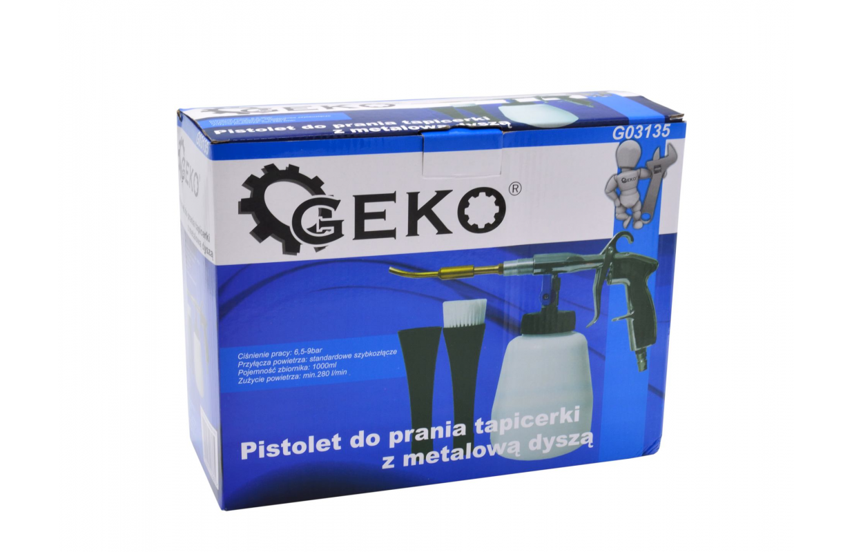 Tornador G03135 ķīmiskā tīrītava izsmidzina ne tikai gaisu zem spiediena, bet arī mazgāšanas līdzekli, pateicoties kuru tas bez piepūles notīra visas virsmas, arī tās, kurām ir grūti piekļūt. Ierīci var izmantot gan vietējai netīrumu noņemšanai, gan arī pilnīgai jebkuras klases automašīnu salonu sausai tīrīšanai.