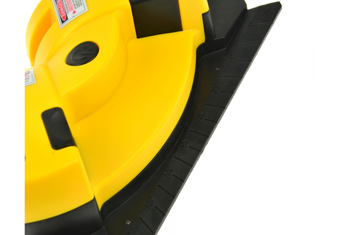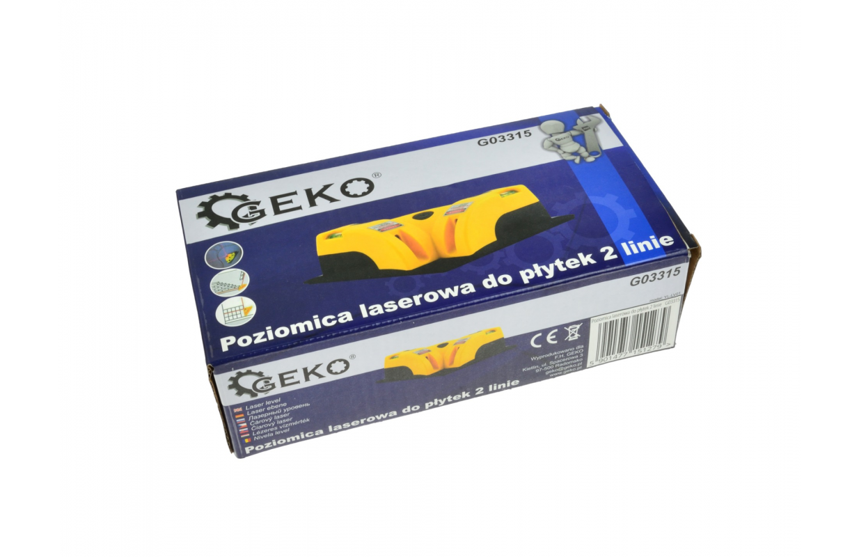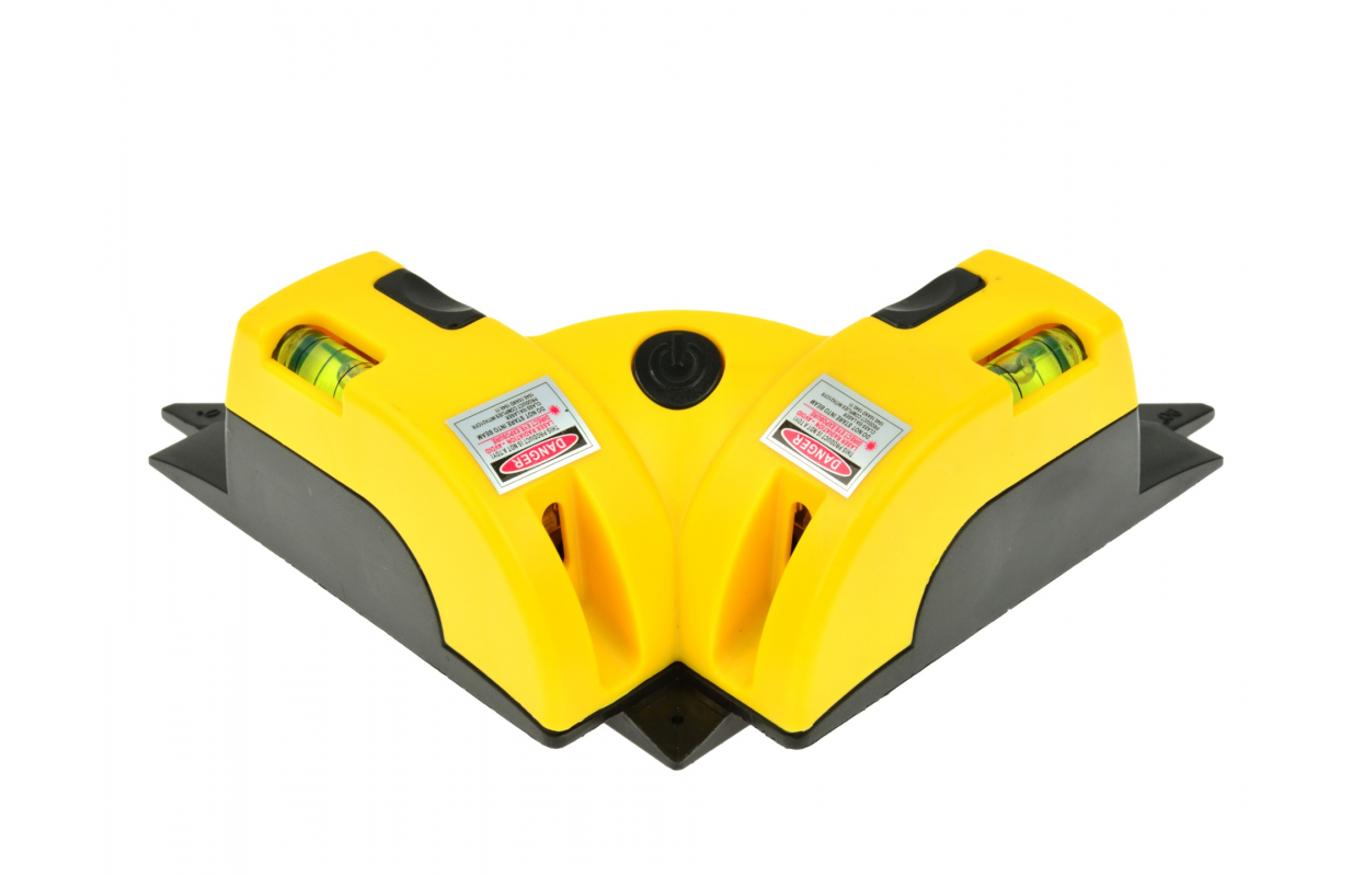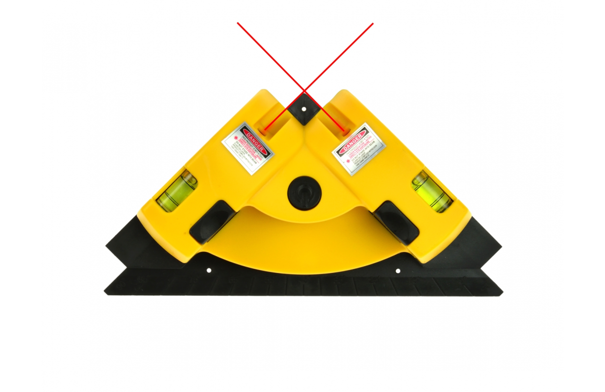 Lineārā leņķa lāzers plāksnēm. Tas ģenerē divas līnijas 90° leņķī uz katras virsmas līdz 16 metru attālumā.