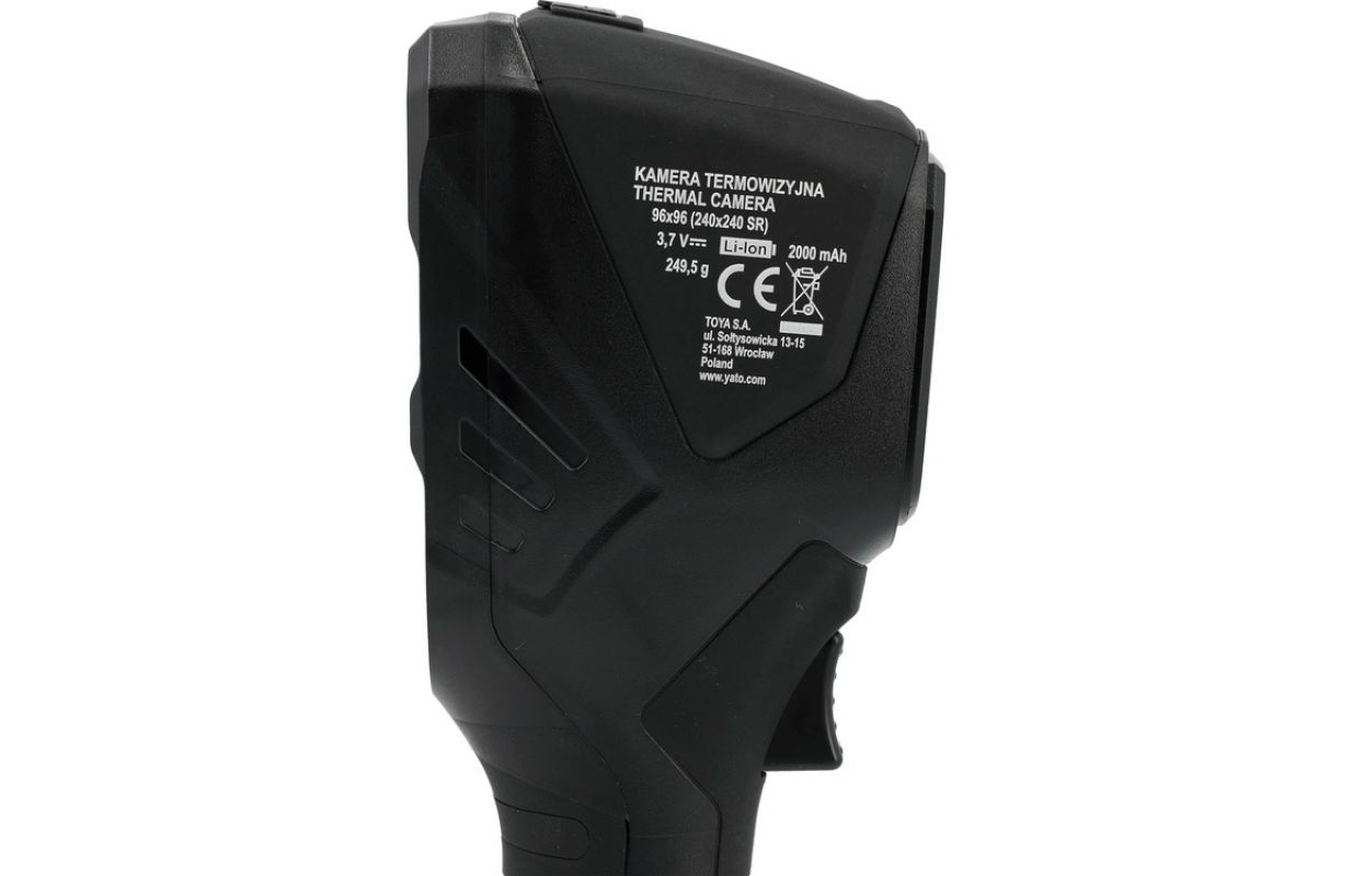 Zīmols Yato Subjekts, kas atbild par šo produktu ES TOYA S.A. Vēl Sērija GRF Temperatūras mērīšanas diapazons -20 ~ +150 / -4 ~ +302, 100-550 / 212-1022 ˚C/˚F Darba relatīvā mitruma Rh 10-85 % NETD (termiskā jutība) ≤60 @ 25°C, F/1.0 mK Temperatūras mērīšanas precizitāte ±2°C / ±2% Aku tips Li-Ion Aku spriegums 3.7 V past. Aku jauda 2000 mAh Lādētāja tips USB Type-C Lādēšanas strāva 1 A Maks. darba laiks 4 h Izmēri 208x60x9x75x9 mm Skata leņķis 50x50 ˚ Iekšējā atmiņa 8 GB eMMC, no kuriem apmēram 6.5 GB ir pieejami lietotājam Uzglabāšanas formāts JPG (attēli), MP4 (video) Attēlu režīmi termālais attēls, termālais attēls ar redzamā gaismas kameras kontūriem, redzamā gaismas kameras attēls ar temperatūrām Krāsu režīmi varavīksne, sarkans dzelzs, silts sarkans, silts balts, silts melns Efektīvā izšķirtspēja 240x240 pikseli Redzamā gaismas attēla izšķirtspēja 640x480 pikseli Infrasarkano detektoru izšķirtspēja 96x96 pikseli Ekrāna atsvaidzināšanas frekvence ≤18 Hz Valodas izvēlne poļu, angļu, ukraiņu, vācu, itāļu, ķīniešu Automātiskā izslēgšanās 5 min, 20 min, iespēja izslēgt funkciju Datu eksports USB (savienojums ar datoru) Ieejas spriegums 5 V past. Darba temperatūras diapazons -5 ~ +45 ˚C Uzglabāšanas temperatūra -10 ~ +50 ˚C Svars 249.5 g Simbols YT-72920