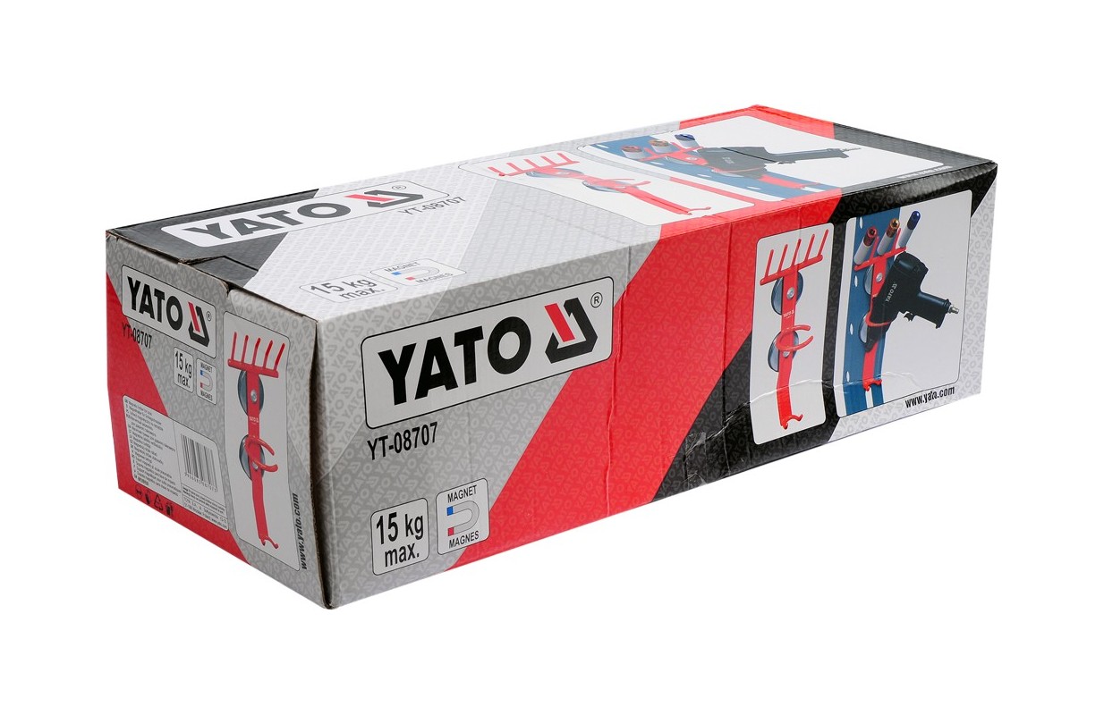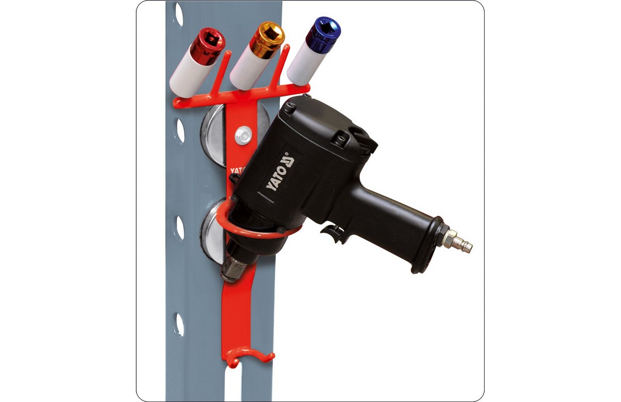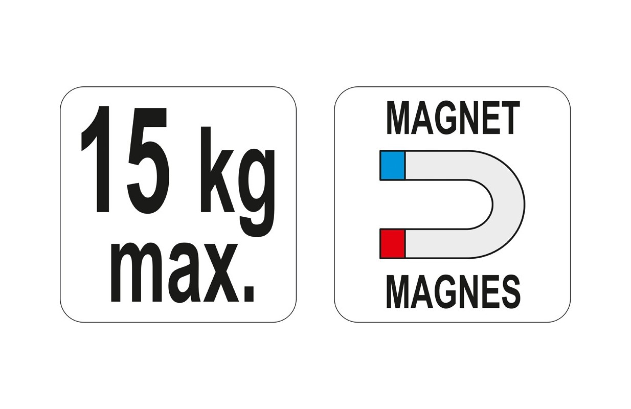 Profesionāls magnētiskais satvērējs instrumentiem darbnīcā. Pateicoties divu ļoti spēcīgu magnētu izmantošanai, šo satvērēju var droši un droši uzstādīt uz jebkuras metāla virsmas. Tas ir īpaši noderīgi kolonnu pacēlāju gadījumā, kur nav iespējams urbt caurumus cita veida instrumentu turētājiem. Roktura kravnesība ir līdz 15 kg.
