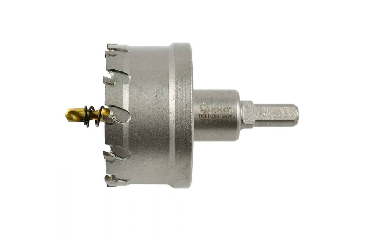 TCT metāla caurumu zāģis ir 60 mm. Asmeņi ir izgatavoti no karbīda, kam raksturīga daudz augstāka cietība un izturība pret augstām temperatūrām, salīdzinot ar HSS ātrgaitas tēraudu. Paredzēts liela diametra caurumiem tēraudā, čugunā, krāsaino metālu, koka, plastmasas uc, lai uzlabotu griezuma precizitāti, tiek izmantots ātrgaitas tērauda virzošais urbis. Atspere, kas uzstādīta uz virzošā urbja, ļauj viegli noņemt izrakto materiālu.