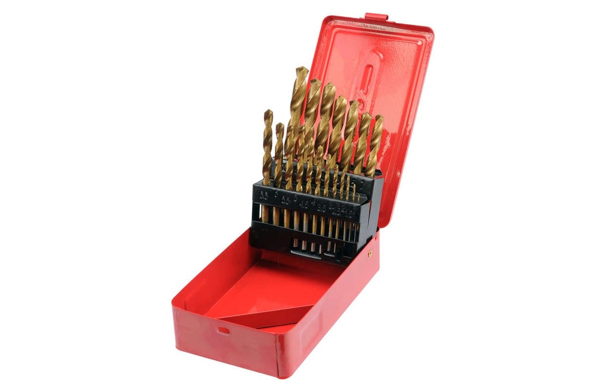 Urbji metālam no ātrgaitas tērauda HSS. Parametri pēc DIN 338, virsma rūdīta ar titāna nitrīdu /zelta krāsa/. Izturīgas un izturīgas urbjmašīnas, kas paredzētas caurumu urbšanai nerūsējošā un skābes izturīgā tēraudā. Komplekts praktiskā metāla maciņā.