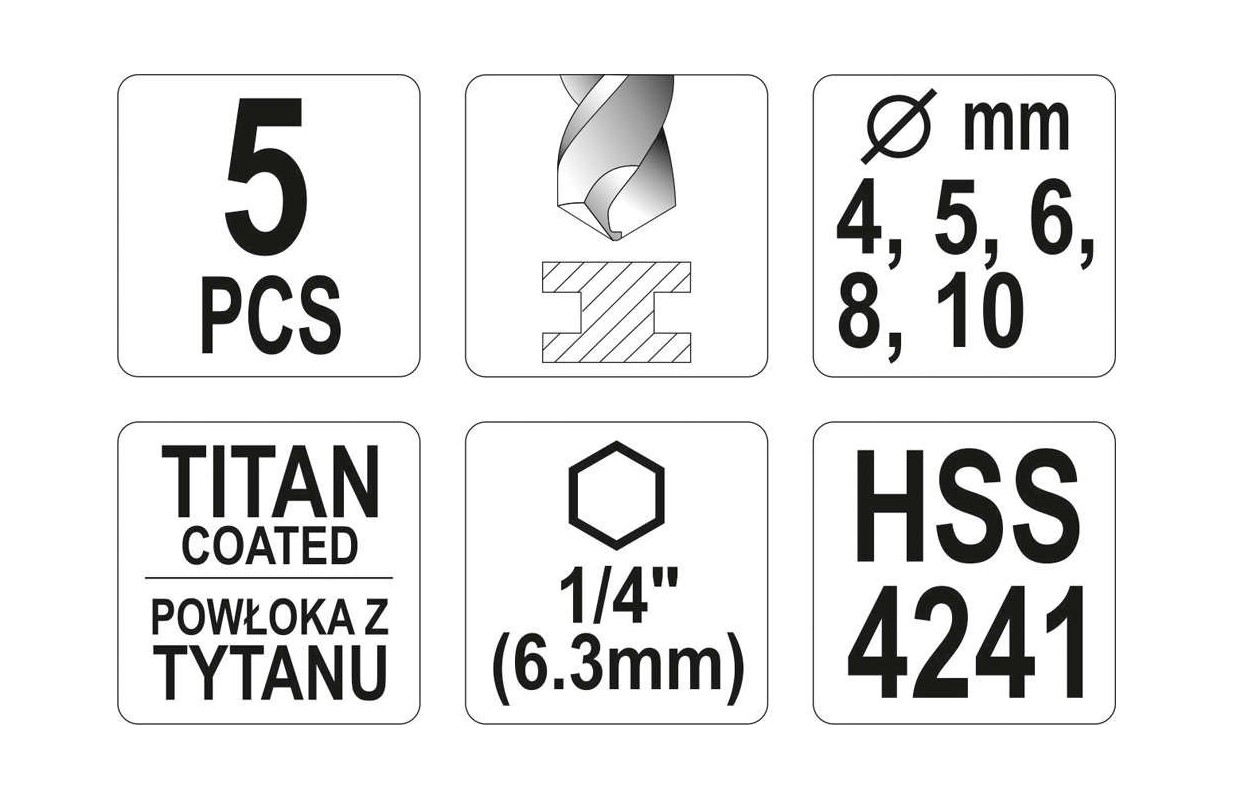 Sešstūrveida urbju komplekts 1/4 "(6,3 mm) | Titāna nitrīds | 4 - 10 mm | 5 gab