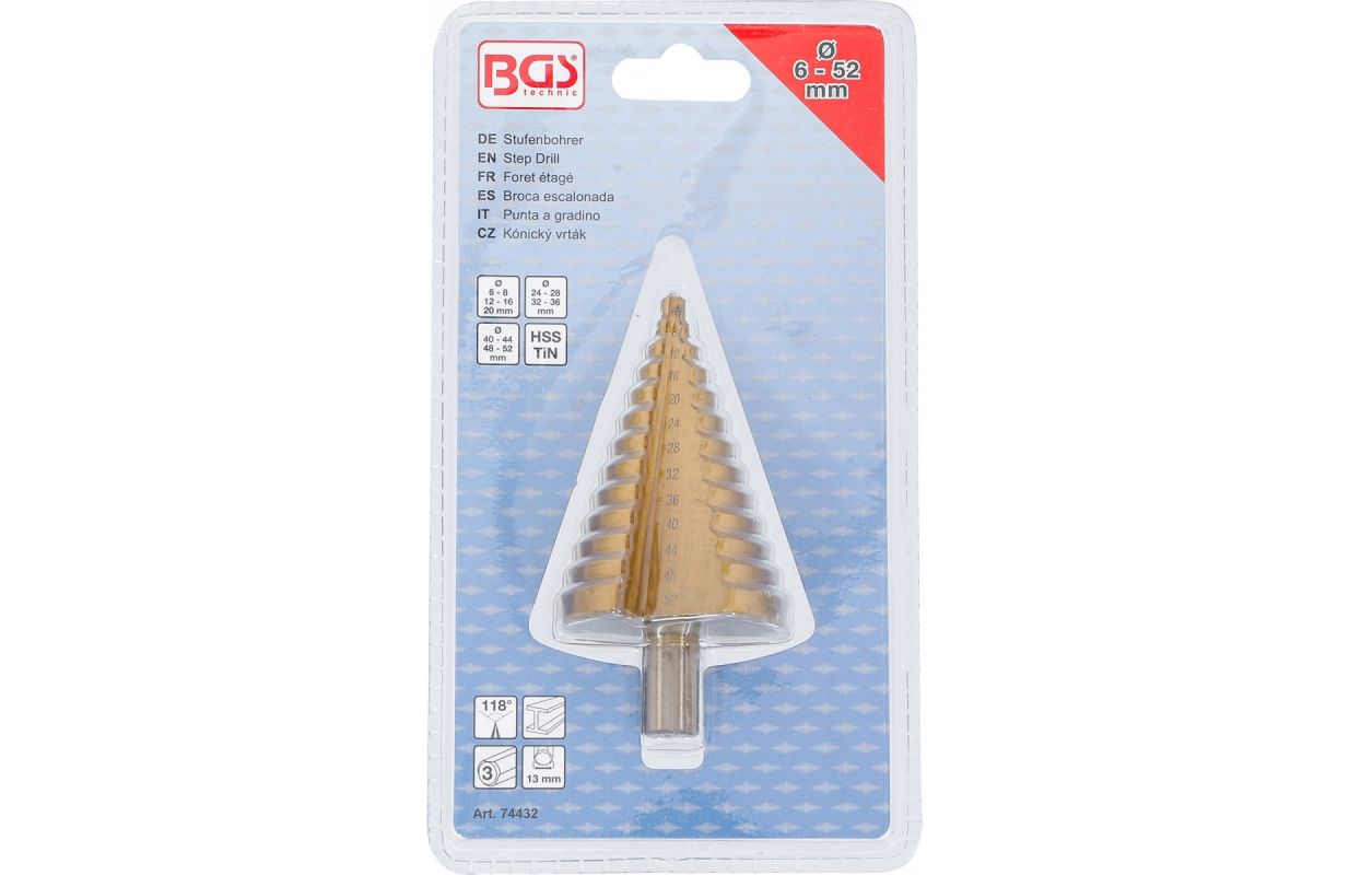 urbšanas soļi: 6, 8, 12, 16, 20, 24, 28, 32, 36, 40, 44, 48, 52 mm