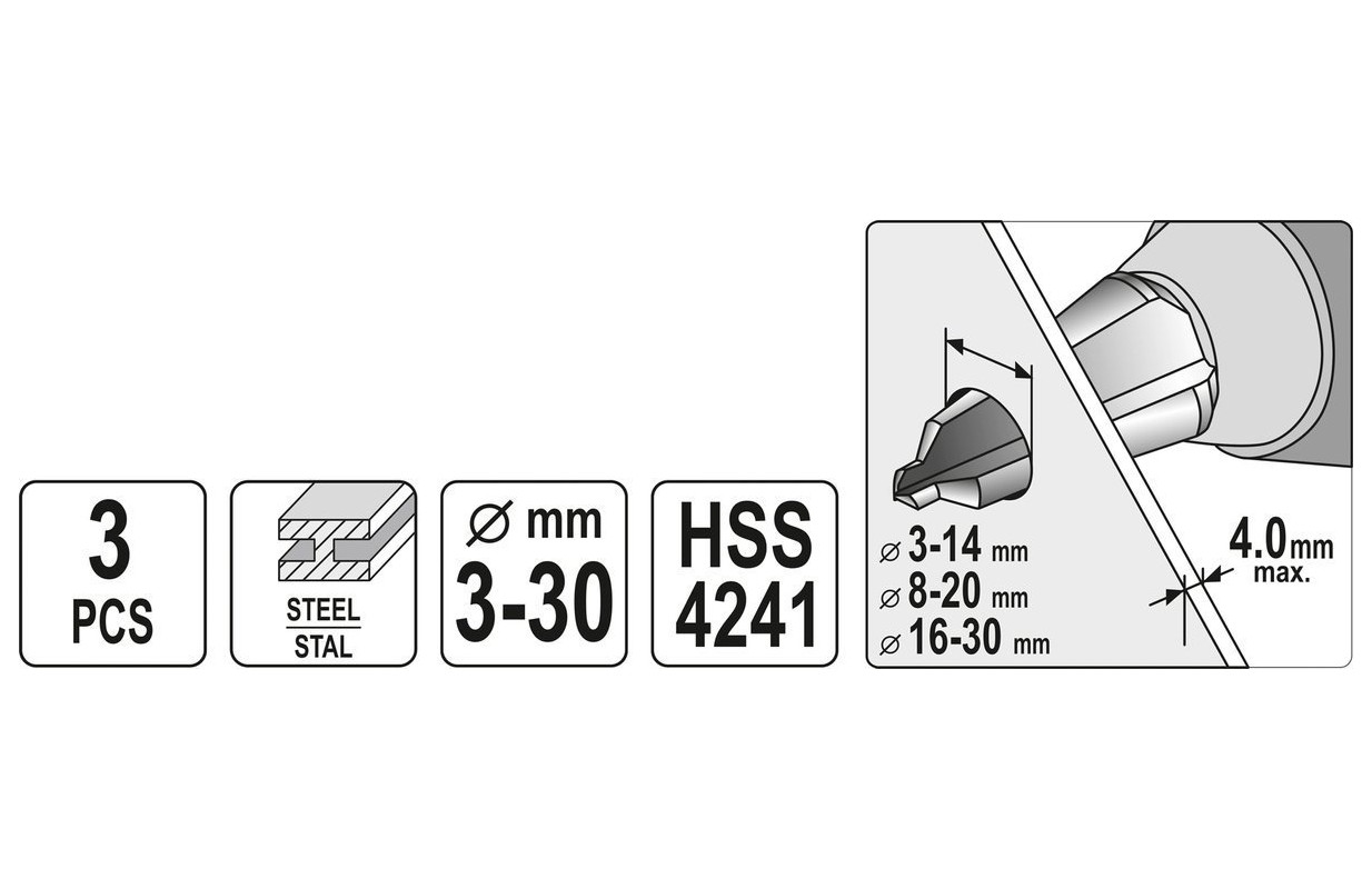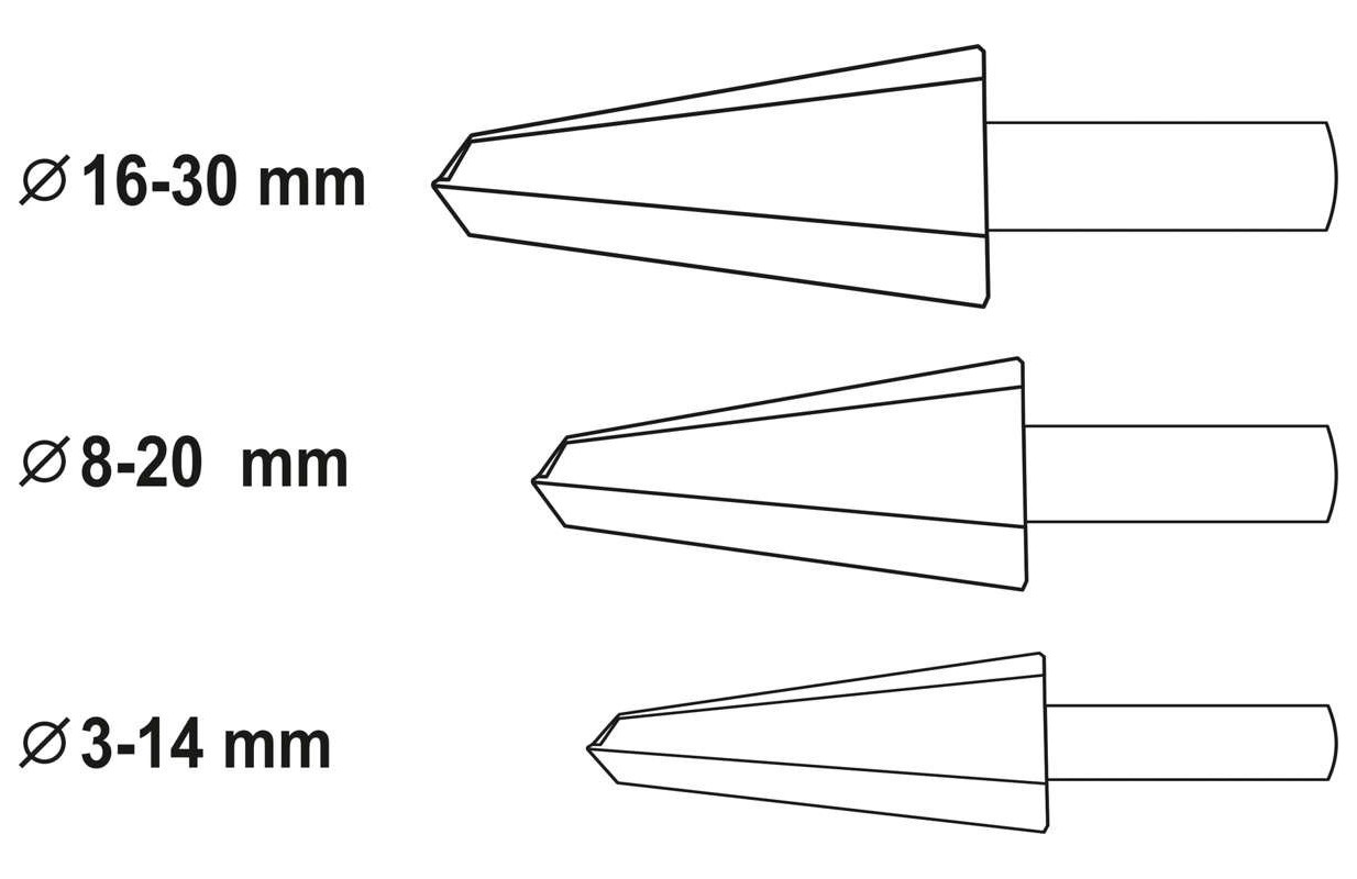 YATO YT-44730 konusveida urbju komplekts no HSS, ātrgaitas tērauda, volframa karbīda tērauda, alumīnija, lokšņu metāla un PVC