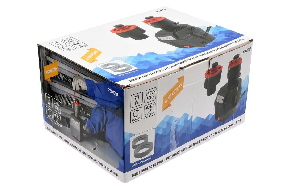 Asināmais ir aprīkots ar divām darba galviņām, kas ļauj asināt dažāda diametra urbjus.