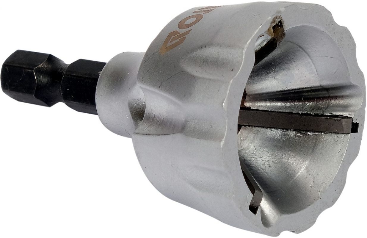 Uzstādiet sešstūra tapu sējmašīnas apvalkā, ielieciet darba daļu uz sagataves. Pagriežot, iekšpusē uzstādītās plāksnes sagriež materiālu un izlīdzinās tā virsmas.