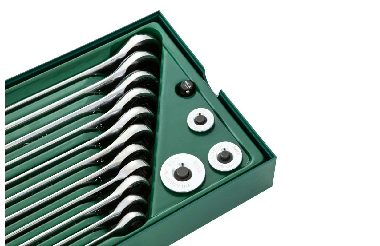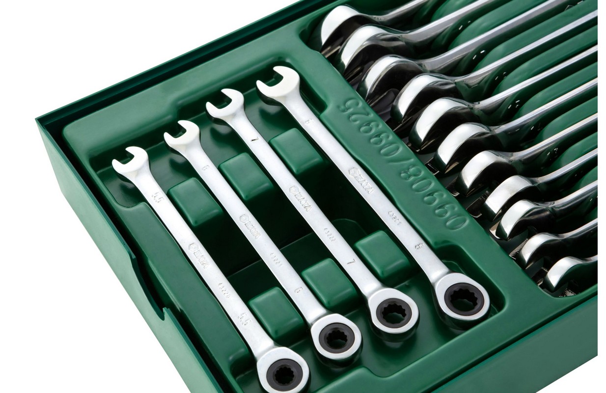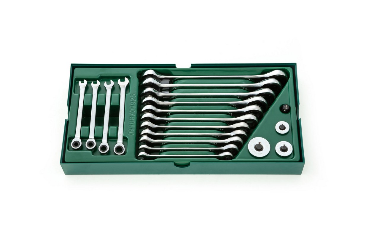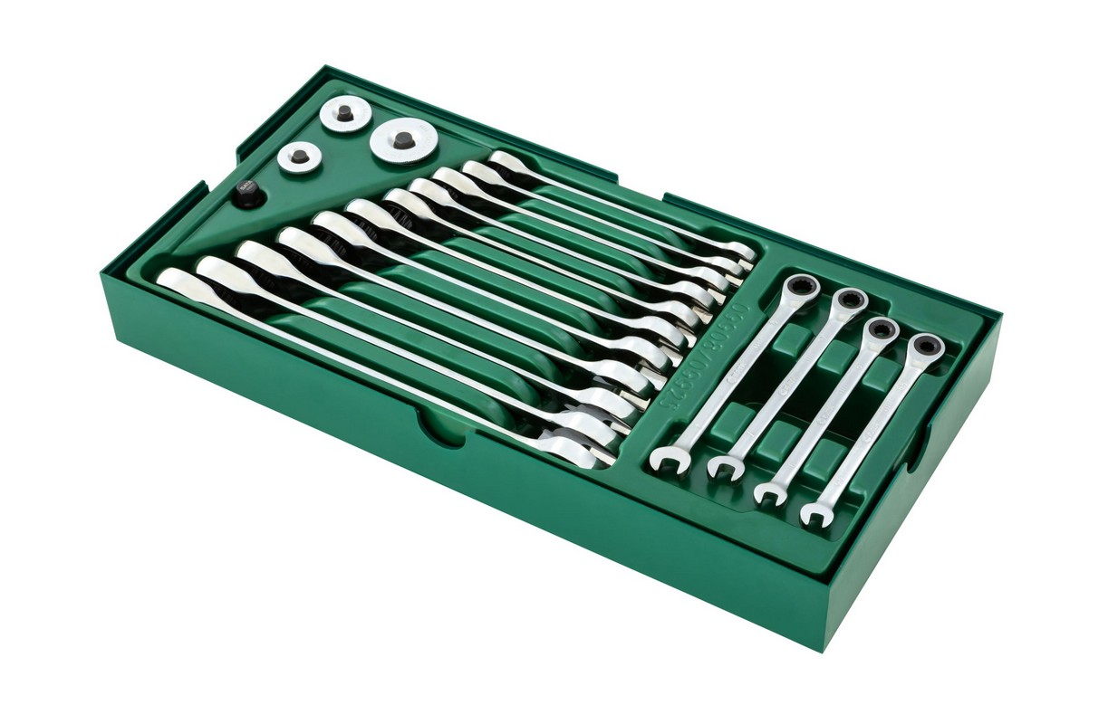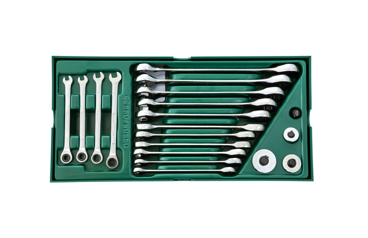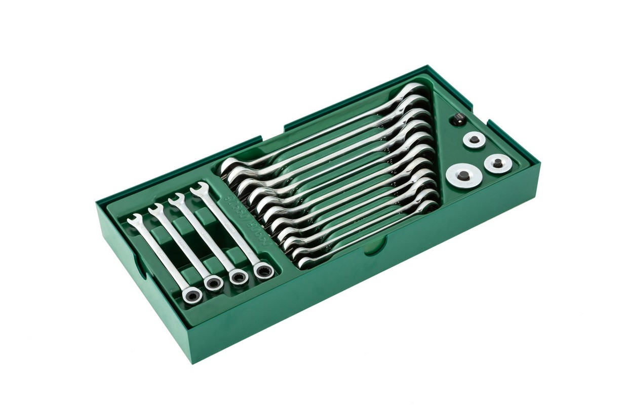 Kombinēto uzgriežņu atslēgu komplekts ar sprūdratu 19gab. (S09908)
