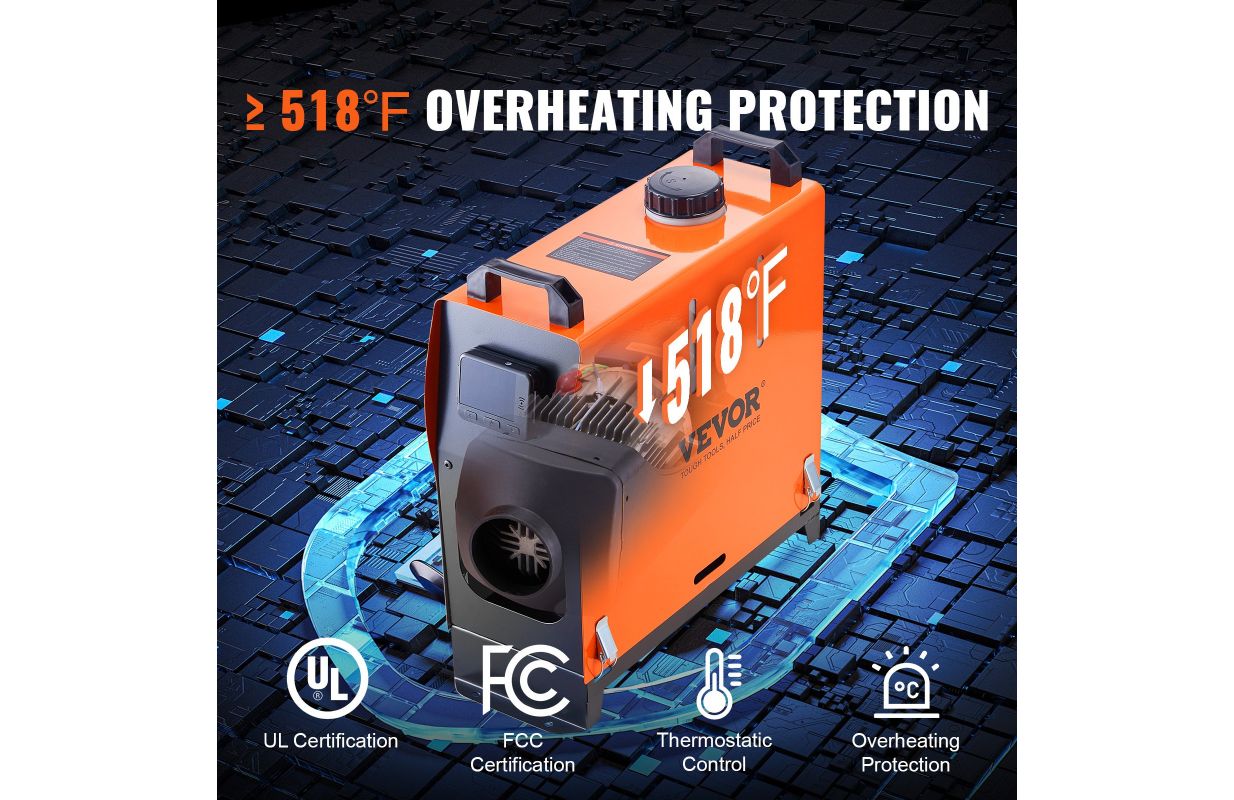• Drošība un uzticamība: Mūsu dīzeļsildītājs ir aprīkots ar augstas drošības sistēmu, kas ļauj to droši lietot dažādās vidēs, piemēram, automašīnās, kempinga automašīnās, kuģos un iekštelpās. Tas nodrošina pastāvīgu temperatūras kontroli, taimera funkciju, balss paziņojumus, iepriekšēju sasildīšanu un aizsardzību pret pārkaršanu pie ≥270 °C, nodrošinot drošu un komfortablu pieredzi visu nakti.