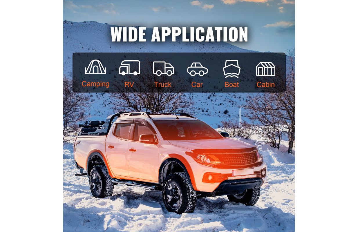 • Vienskāršs risinājums bez uzstādīšanas: Izbaudiet efektīvu apkuri ar mūsu dīzeļsildītāju, kas neprasa uzstādīšanu, padarot to ideālu aktīvai atpūtai dabā, piemēram, kempingā. Sildītāja jauda: 5 kW; nominālā spriegums: 12 V. Piemērojamais diapazons: 15-20 m². Mūsu inovatīvais alumīnija siltummainis ar smilšu strūklas apstrādi nodrošina ātru un efektīvu siltummaiņu, nodrošinot komfortablu temperatūru jūsu automašīnā, laivā vai kabīnē tikai 10 minūšu laikā.