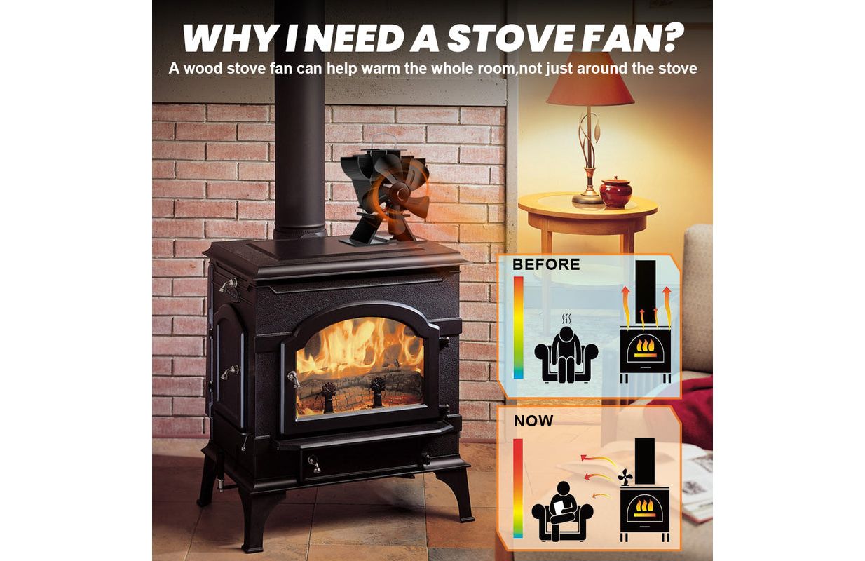 Uzlabojiet tehnoloģiju, ātrāku ātrumu, lielāku gaisa tilpumu. Ar siltumu darbināms krāsns ventilators ir paredzēts, lai cirkulētu siltais gaiss, ko rada koksnes / ogļu vai granulu dedzināšana. Efektīvi cirkulē silts gaiss visā mājā.