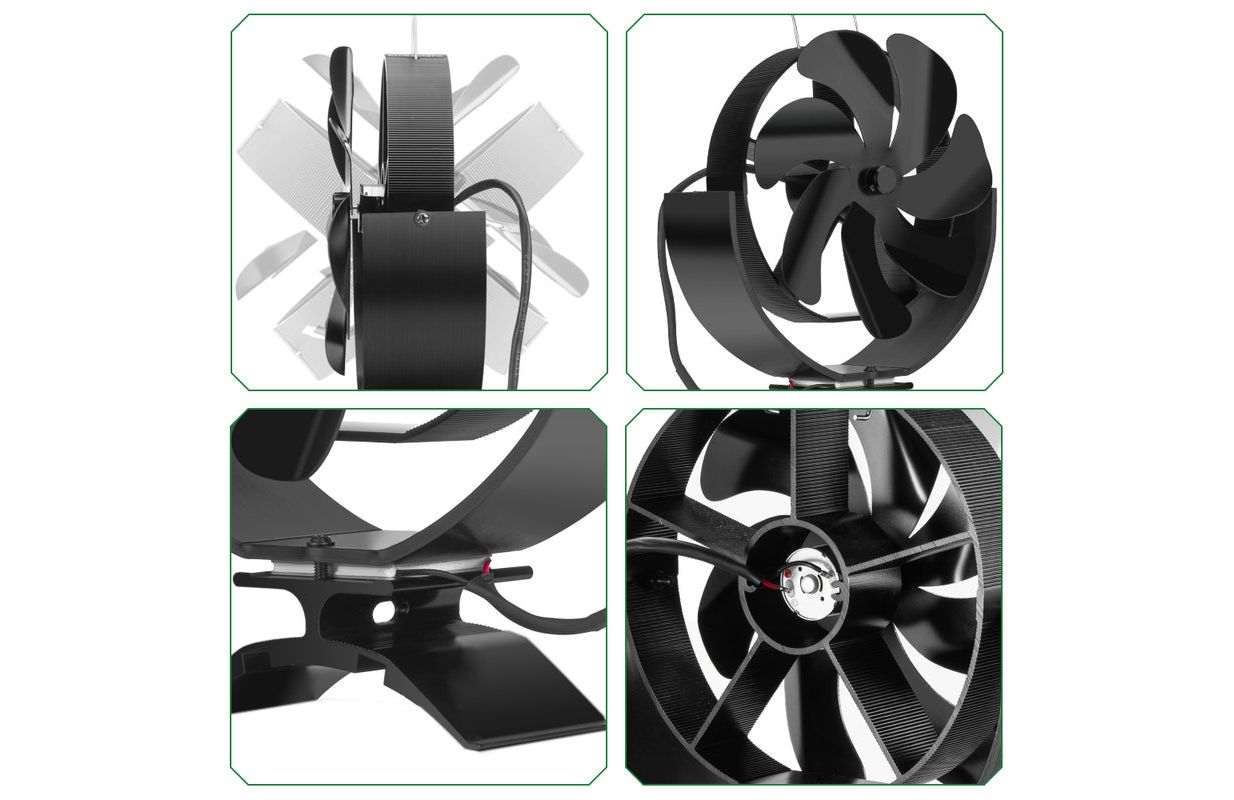 Uzlabojiet tehnoloģiju, ātrāku ātrumu, lielāku gaisa tilpumu. Ar siltumu darbināms krāsns ventilators ir paredzēts, lai cirkulētu siltais gaiss, ko rada koksnes / ogļu vai granulu dedzināšana. Efektīvi cirkulē silts gaiss visā mājā.