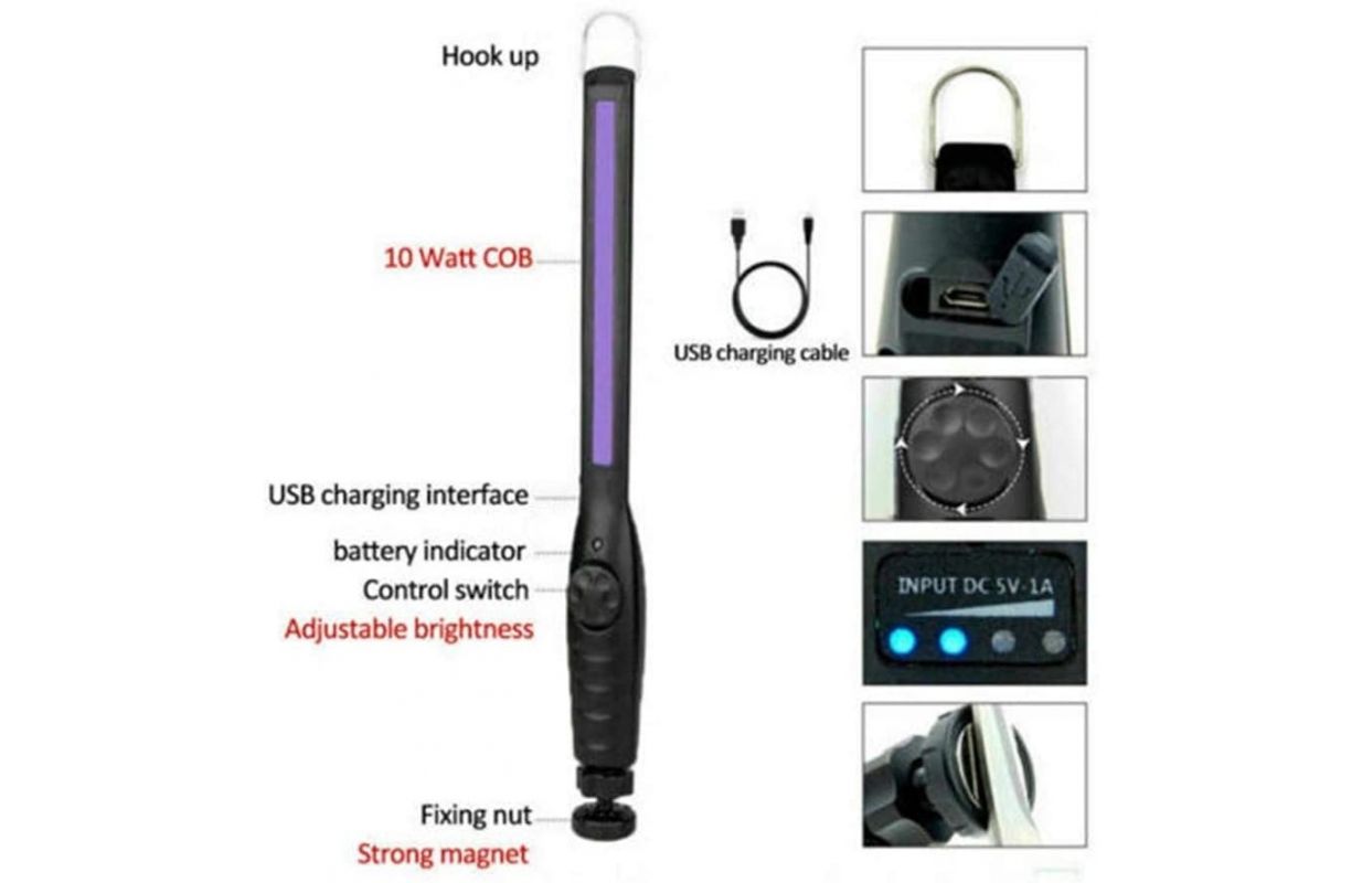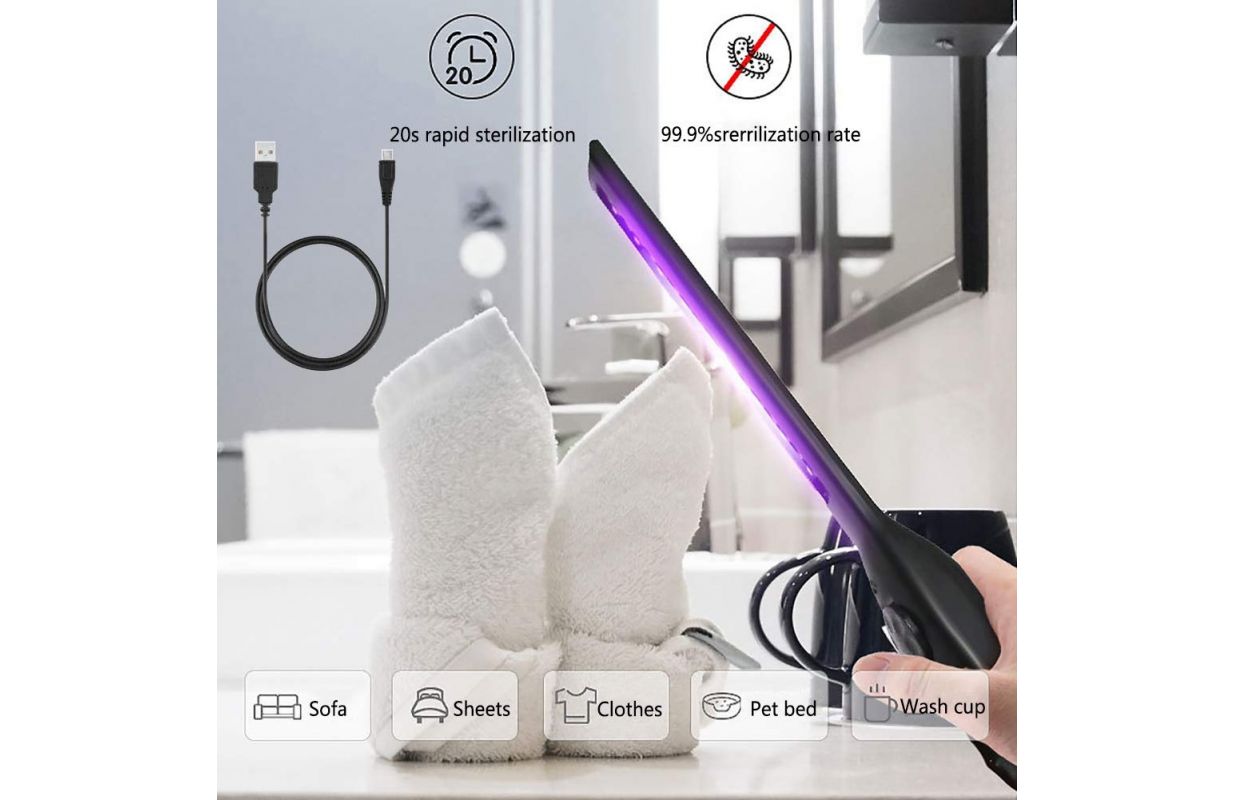 LED UV gaismas dezinfekcijas līdzeklis, UV dezinfekcijas nūja, maza pārnēsājama mājsaimniecības rokas mini ceļojumu nūjiņas dezinfekcijas lampa ar USB viesnīcai, drēbju skapis, tualete, automašīnas materiāls : ABS