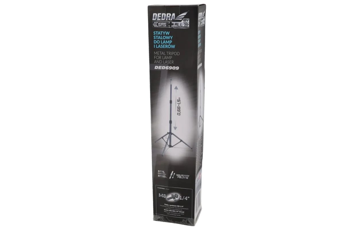Statīvs darbnīcas lampām un krusta lāzeriem ir rīks, ko novērtēs visi, kas vēlas precīzi novietot krusta lāzeru vai izmantot darbnīcas lampu kā augšējo gaismas punktu. Statīvam ir teleskopisks korpuss, kas izgatavots no tērauda. Tā augstums ir regulējams no 0,66-1,5 m. Pamatne ir klasisks statīvs, un komplektā iekļautais adapteris no M 8 uz 1/4" ļauj pievienot krustveida lāzerus un darbnīcas lampas. Ieteicamais statīvs darbnīcas lampām DED6905, DED6907H (piestiprināšana ar adapteri, kas iekļauts komplektā ar lampu) un L1060, L1070, L1090, L1091 sērijas lampām. Ieteicamais statīvs šķērseniskajiem lāzeriem MC0901, M C0903, MC0904, MC 0905, M C0906.