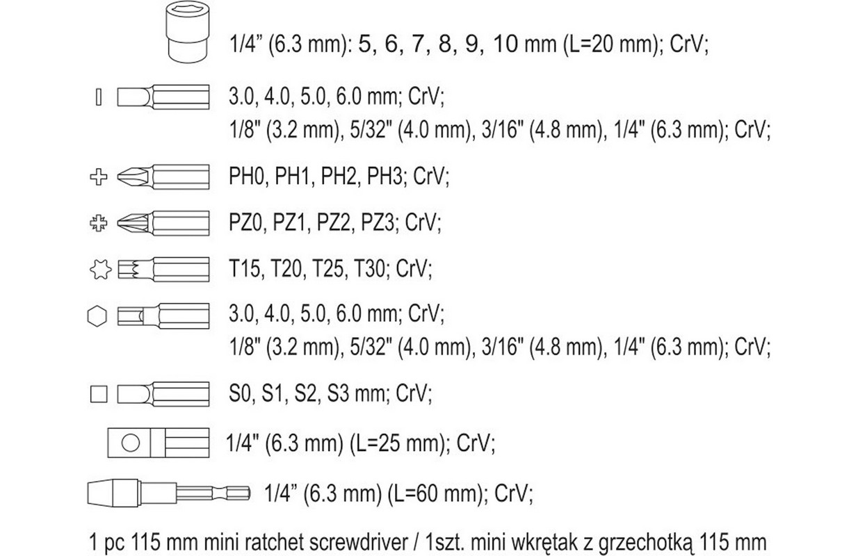 Reversa skrūvgriezis ar uzgaļu komplektu (64385)
