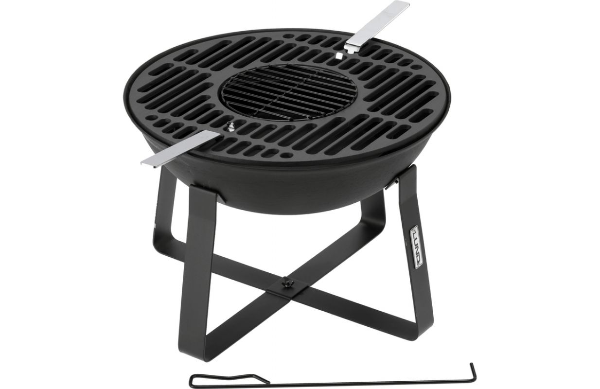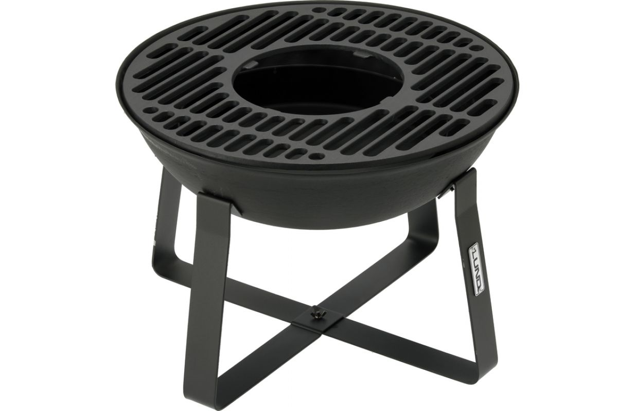 divas funkcijas - konstrukcija ļauj izmantot produktu gan grilēšanai, gan kā ugunskuru, nodrošinot atklātas uguns iedegšanu, siltumu un atmosfēru outdoor tikšanās laikā čuguna konstrukcija - ugunskurs un restes no čuguna raksturojas ar augstu termisko izturību, labu siltuma uzkrāšanu un ilgu kalpošanas laiku regulāras lietošanas gadījumā lielas restes - 50 cm diametrs nodrošina pietiekamu platību gaļas, dārzeņu un citu ēdienu grilēšanai vairākiem cilvēkiem vienlaikus stabila darba augstums - ugunskurs 36 cm augstumā veicina drošu lietošanu un ērtu kurināmā pievienošanu un restes darbu gatavs lietošanai komplekts - komplektā ietilpst ugunskurs, čuguna restes un dzelzs, ļaujot jums sākt to izmantot bez nepieciešamības iegādāties papildu aksesuārus Tehniskie parametri: