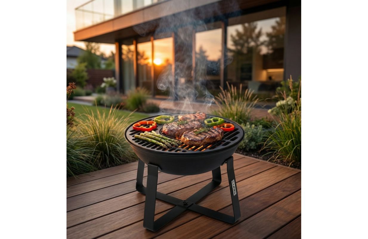 Vienkāršā, stabilā konstrukcija no izturīga čuguna ļauj produktam labi izturēt augstas temperatūras un ilgi saglabāt siltumu, kas veicina vienmērīgu ēdienu pagatavošanu un stabilu koksnes dedzināšanu. Šis risinājums labi darbojas gan nedēļas nogalēs ar grilu, gan mierīgās vakaros pie ugunskura.
