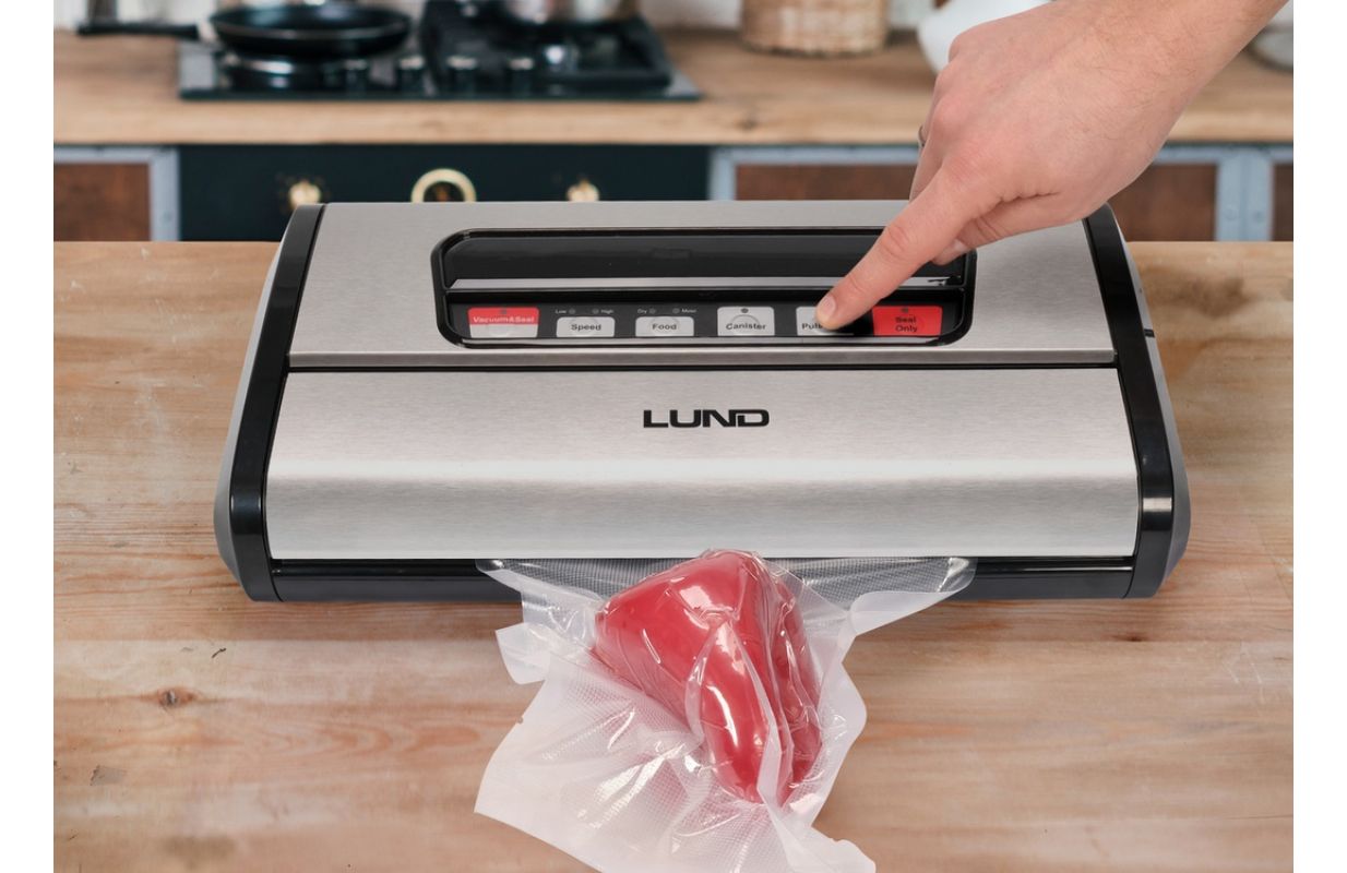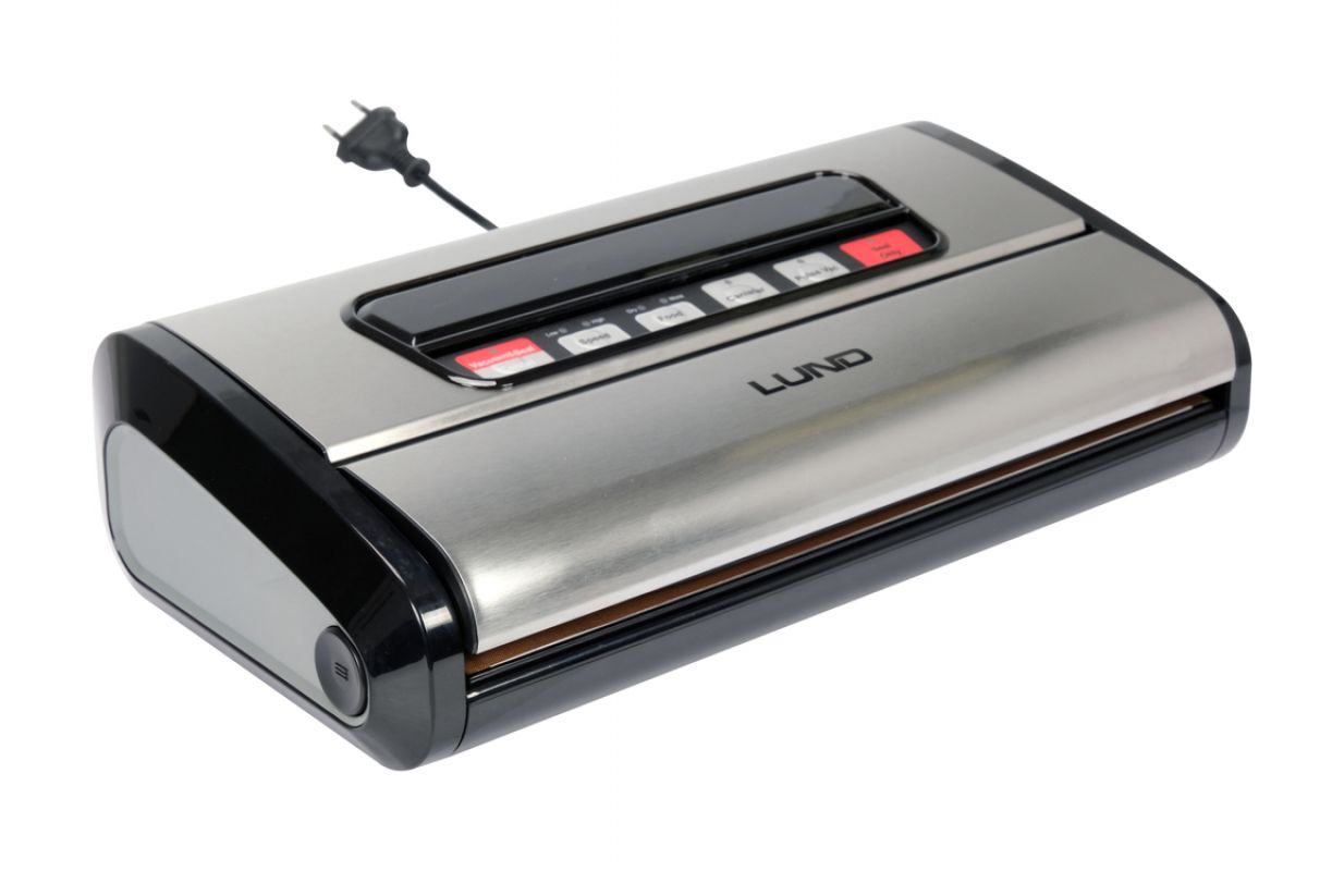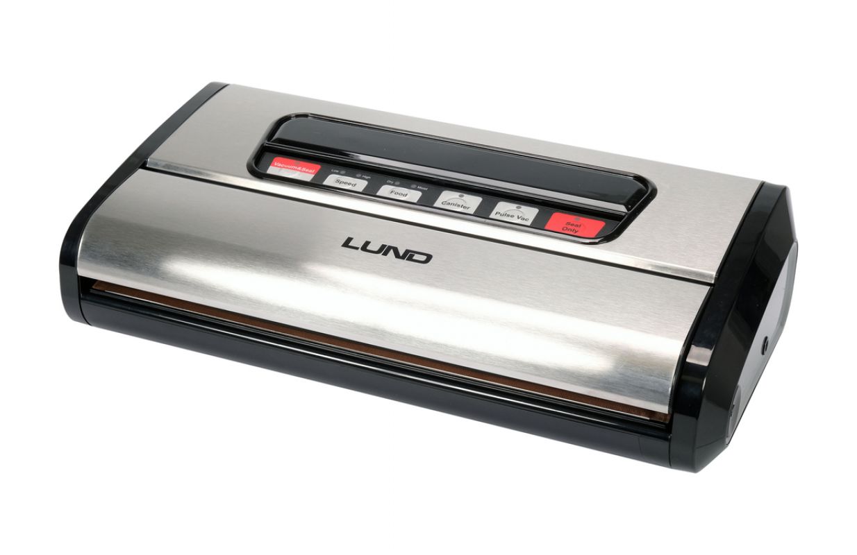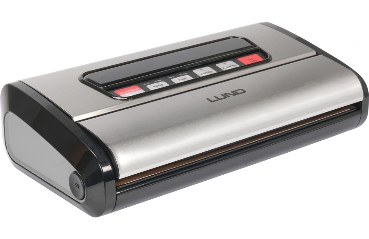 Liels un jaudīgs vakumizolators LUND ar jaudu 165 W un maksimālo iepakojuma platumu līdz 32 cm. Iekšā var uzglabāt un griezt plēves rulli ar nazi, tāpēc tas vienmēr ir pa rokai, un tā garumu var regulēt atkarībā no iepakojamiem produktiem. Ierīce ļauj izvēlēties iesūkšanas funkciju atkarībā no pārtikas veida. Komplektā ir arī šļūtene, kas ļauj izvilkt gaisu no īpašiem vakumizolācijas traukiem.