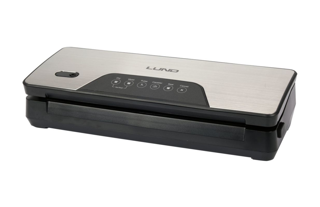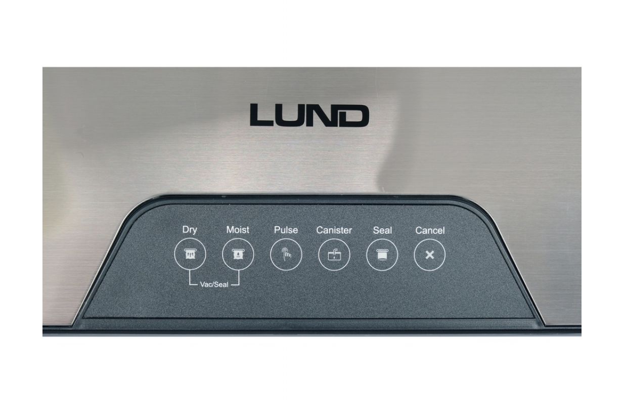 jauda: 130 W, 220-240 V, 50/60 Hz maksimālais iepakojuma platums: 30 cm blīvēšanas joslas augstums: 3 mm novērš noplūdes radītais vakuums: -0.7 bārs (-70 kPa) ieteicams izmantot vakuma iepakošanas ierīci ar firmas vakuma maisiņiem LUND (saraksts zemāk) iepakošanas ierīce ir noderīga gatavošanai, izmantojot sous-vide metodi Konstrukcija un izmēri: