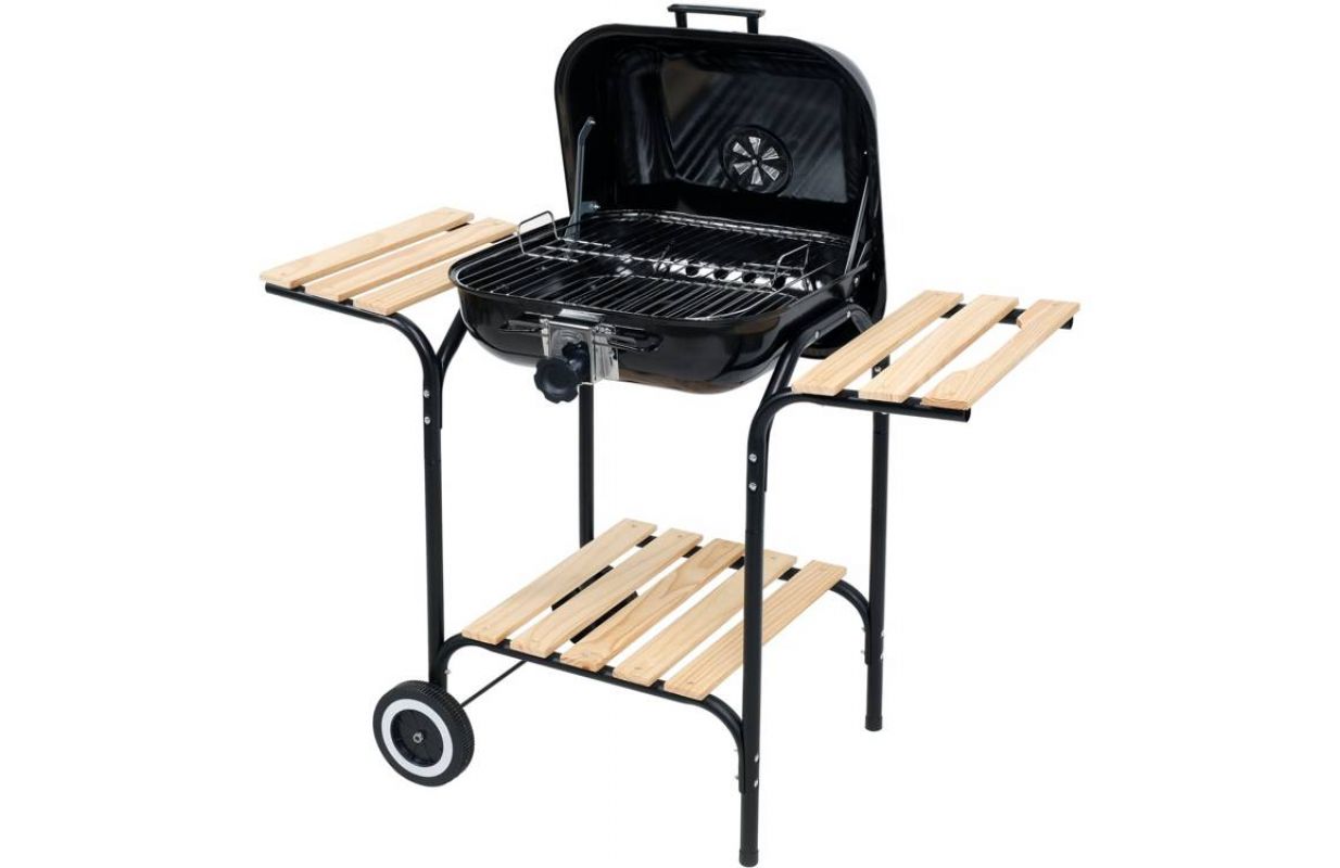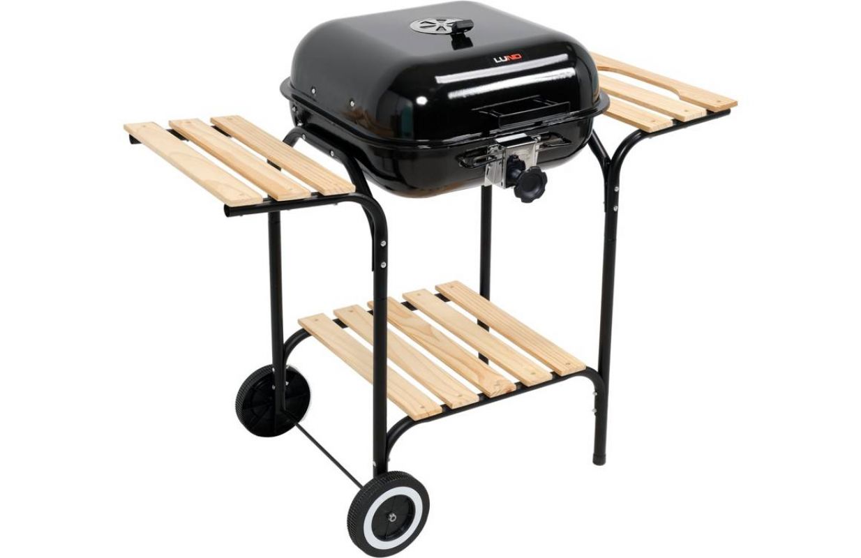 LUND 99905 klasiskais kokogļu grils ar hroma grilu, augstumā regulējamu kokogļu režģi un karstumizturīgu vāku. Tas ir aprīkots ar papildu ērtībām - sānu plauktiem, apakšējo plauktu un transporta riteņiem. Grils atbilst drošības standartiem PAMATINFORMĀCIJA: hroma režģis ar diviem rokturiem. Tas ir viegls, nesalaužams, ļoti izturīgs pret koroziju, viegli tīrāms un ar ilgu kalpošanas laiku