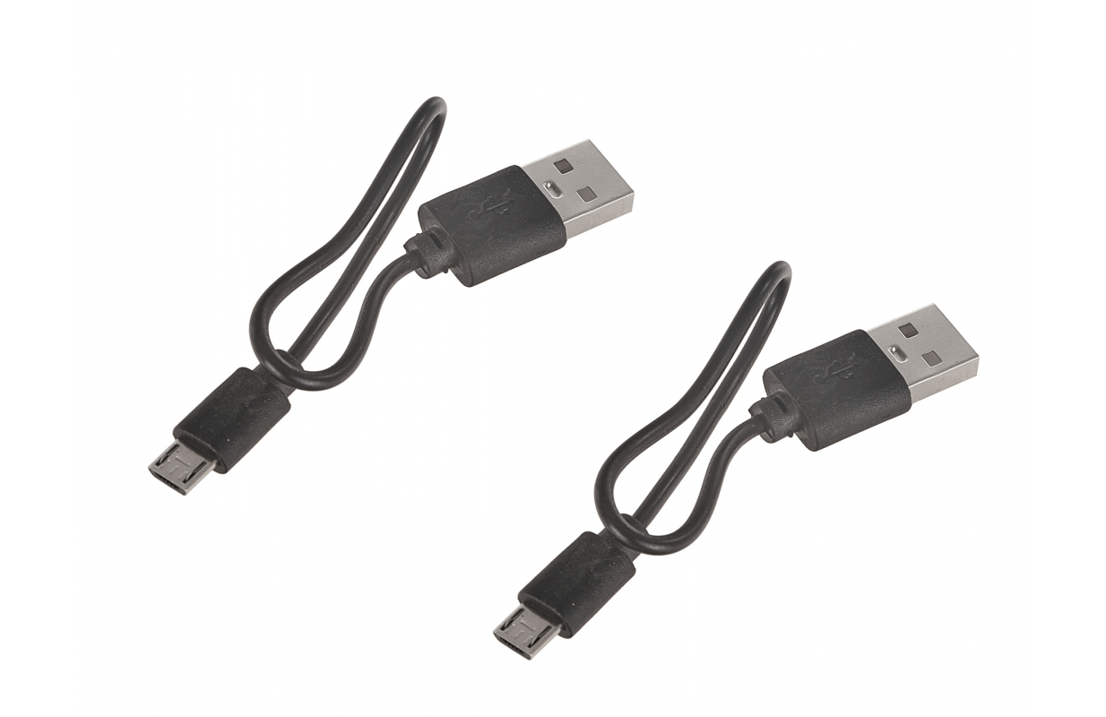 Ir iekļauti divi mikro-USB kabeļi, lai uzlādētu gaismas