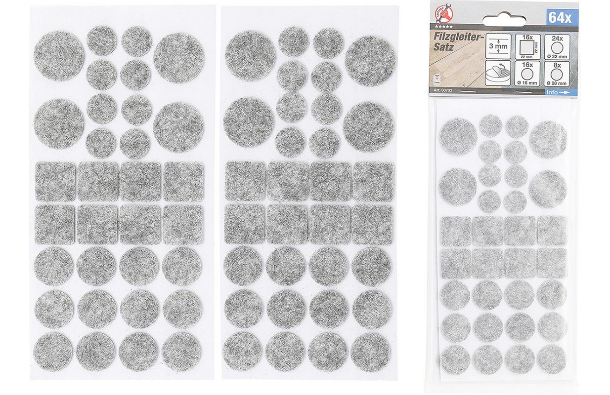 Filca spilventiņu komplekts | pelēks krāsots | 64 vienības (80703)