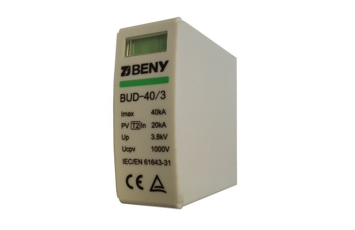 Rezerves SPD modulis fotoelektrisko un saules enerģijas pārveidotāju aizsardzībai pret pārspriegumiem, 40 kA jauda, piemērots montāžai uz Din sliedes.