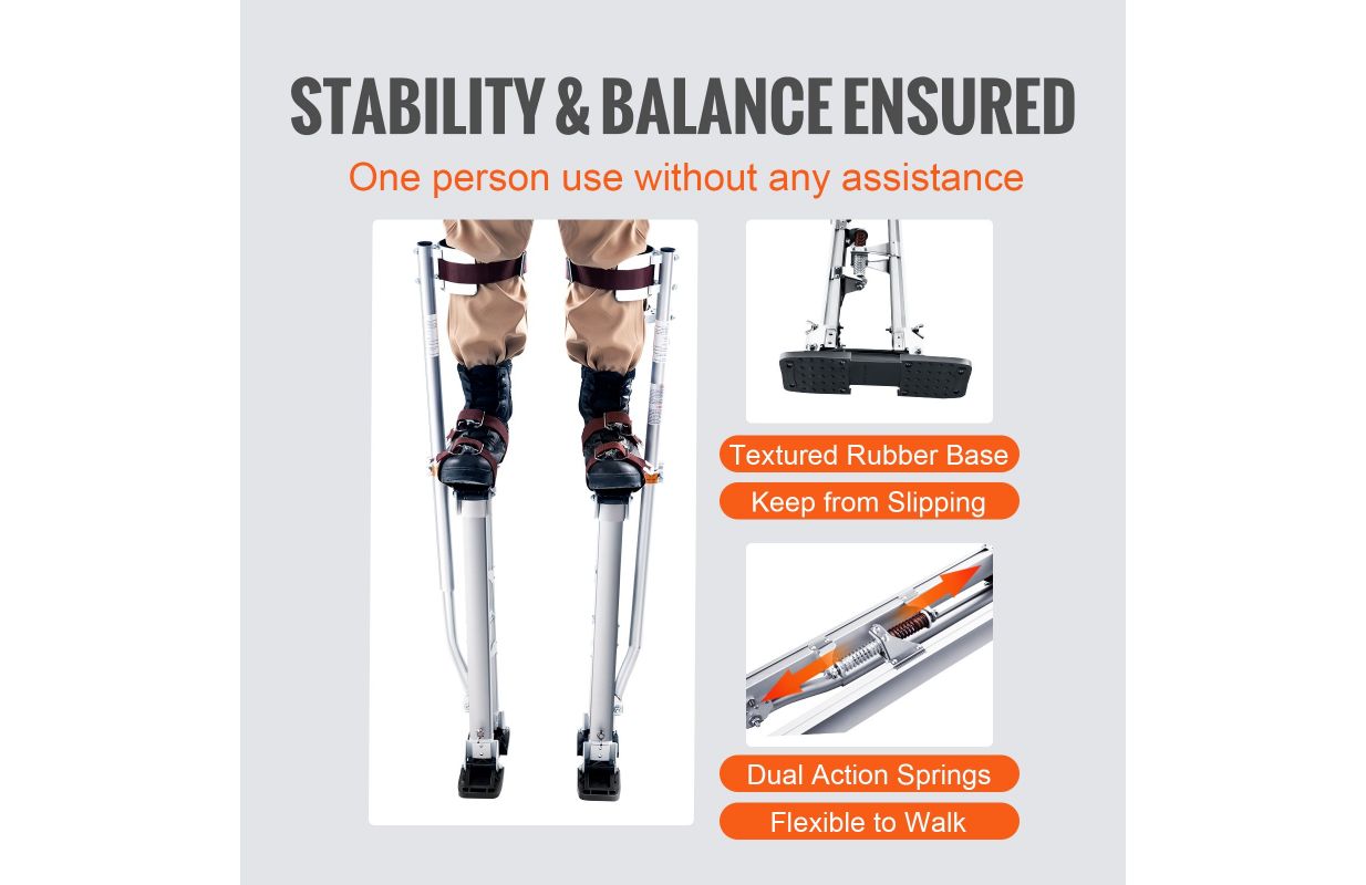 • Stabilitāte pār pārējo: Papildus izturīgām neilona siksnām, kas nodrošina jūsu drošību, drywall statņiem ir arī divas triecienu absorbējošas atsperes, lai saglabātu līdzsvaru staigājot, lai jūs varētu viegli stāvēt atsevišķi. Stilts dos jums priekšrocības jūsu nākamajā lielajā projektā; Apakšējās gumijas pamatnes palielina berzi uz zemes, lai izvairītos no slīdēšanas un skrāpējumiem.