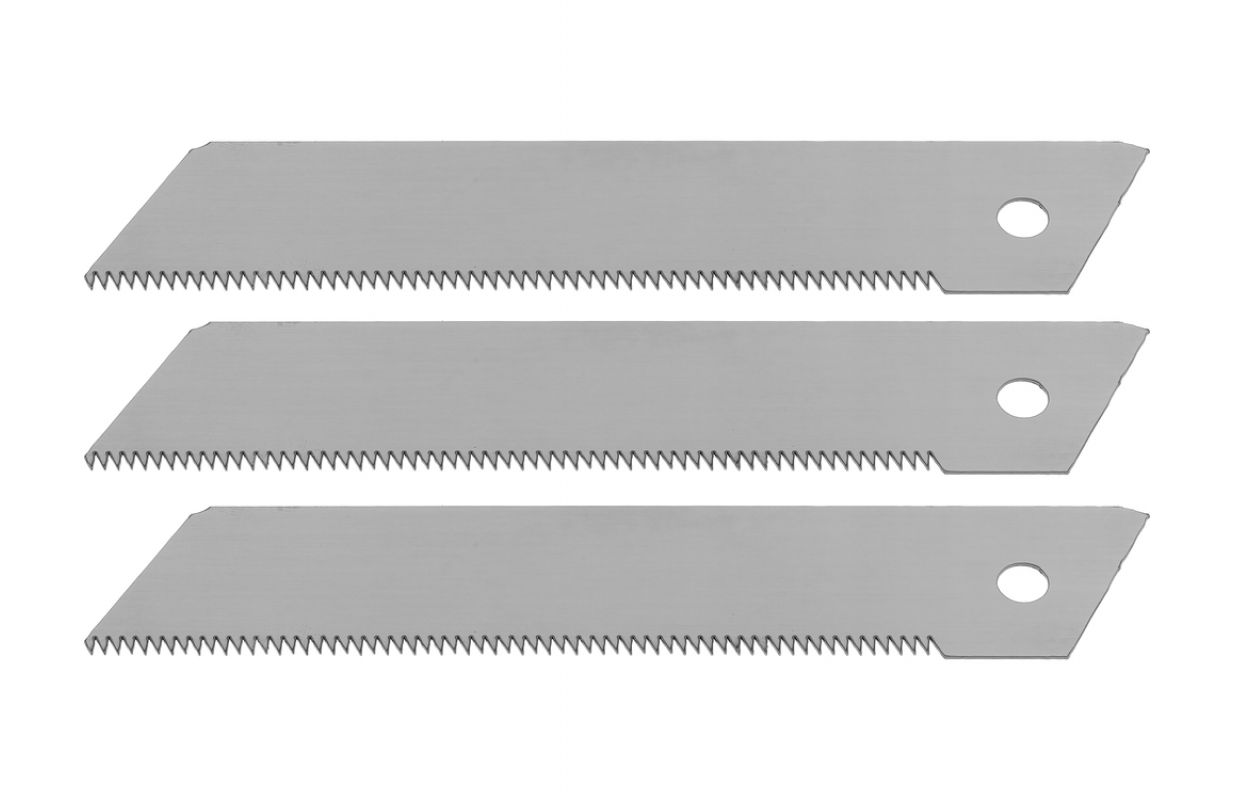 Rezerves asmeņi elektriskajiem zāģiem, kas paredzēti tehniskajiem nažiem, kas tiek izmantoti šķiedru materiālu un plastmasas griešanai. Izgatavoti no instrumentu tērauda SK5, tie nodrošina ilgmūžīgu griešanas malu un vieglu griešanas uzsākšanu bez slīdēšanas pa materiāla virsmu.