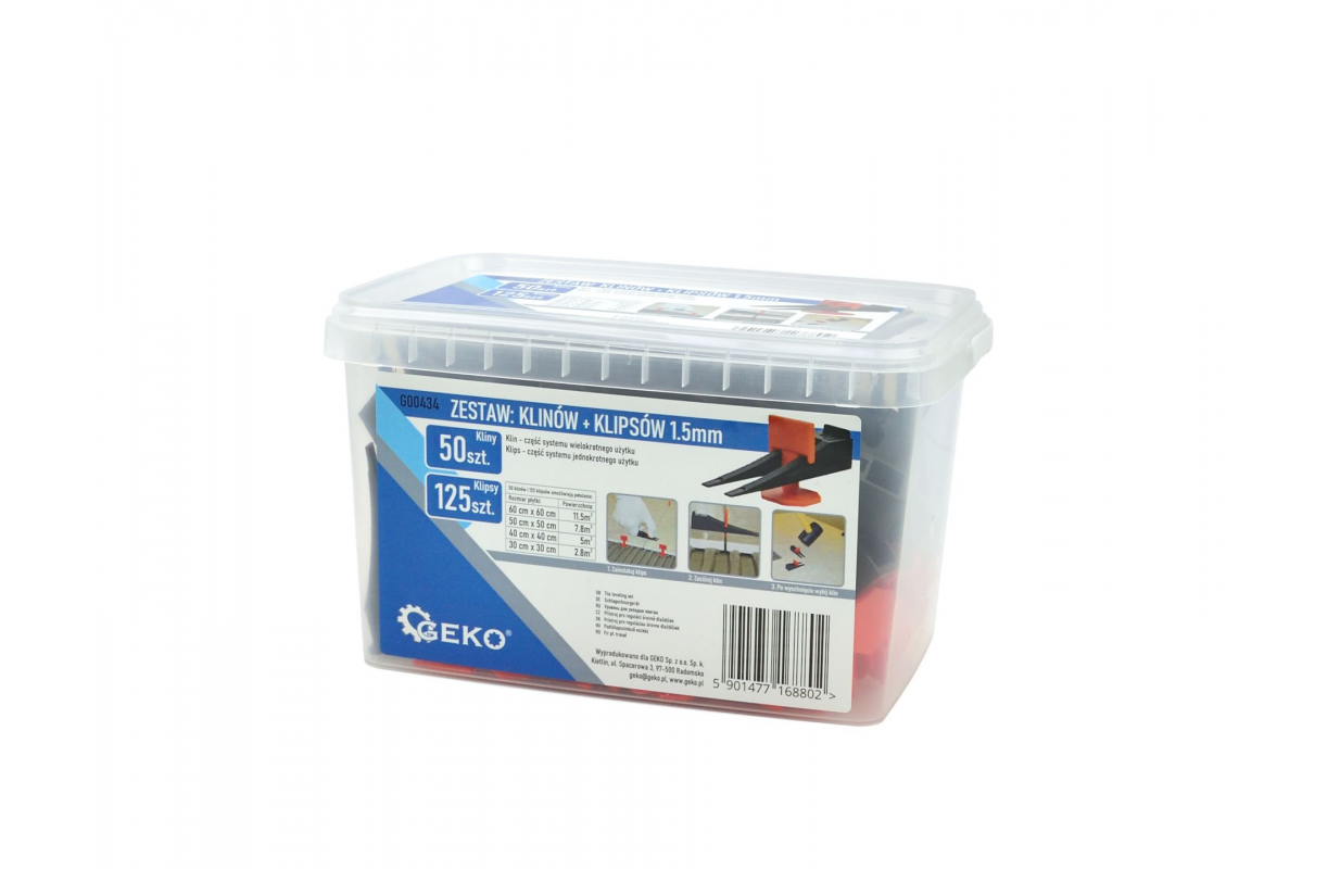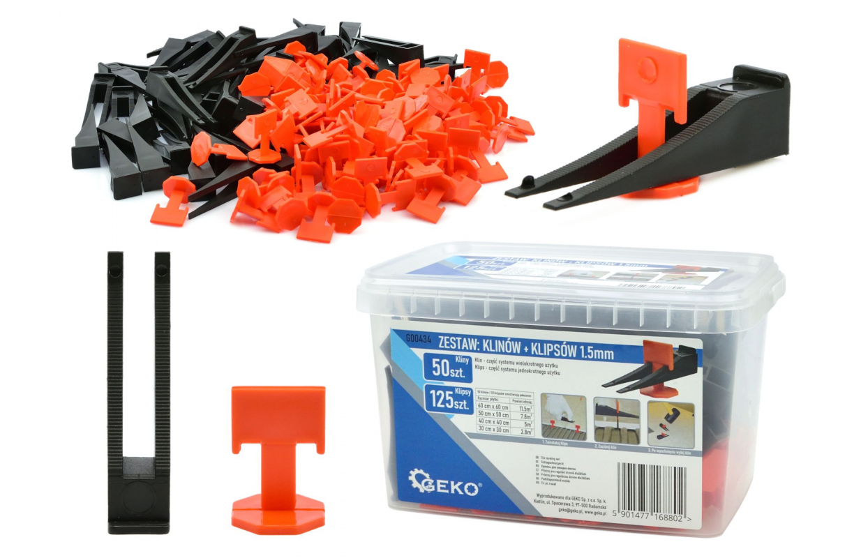 Flīžu izlīdzināšanas sistēma uzlabo flīzēšanas procesa efektivitāti un precizitāti. Komplekts ir ideāli piemērots gan profesionāļiem, gan nepieredzējušiem cilvēkiem. Klipi ir 1,5 mm biezi. Komplektā ietilpst 50 ķīļi un 125 1,5 mm skavas.