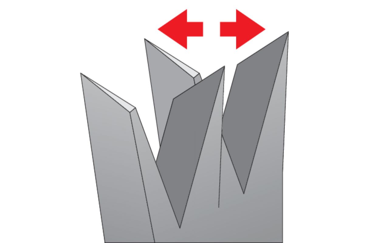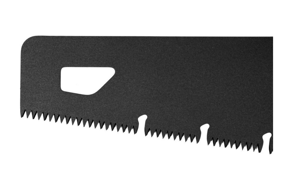 Jā. Zāģis ar trīspusējiem zobiem, kas sakārtoti grupās pa 9 collām. Asmens spraugas atvieglo zāģu skaidas noņemšanu. Melnā teflona PTFE pārklājums samazina berzi. Slēgts rokturis ar gumijotiem elementiem ļauj droši turēt zāģi. Asmens biezums 0,9 mm