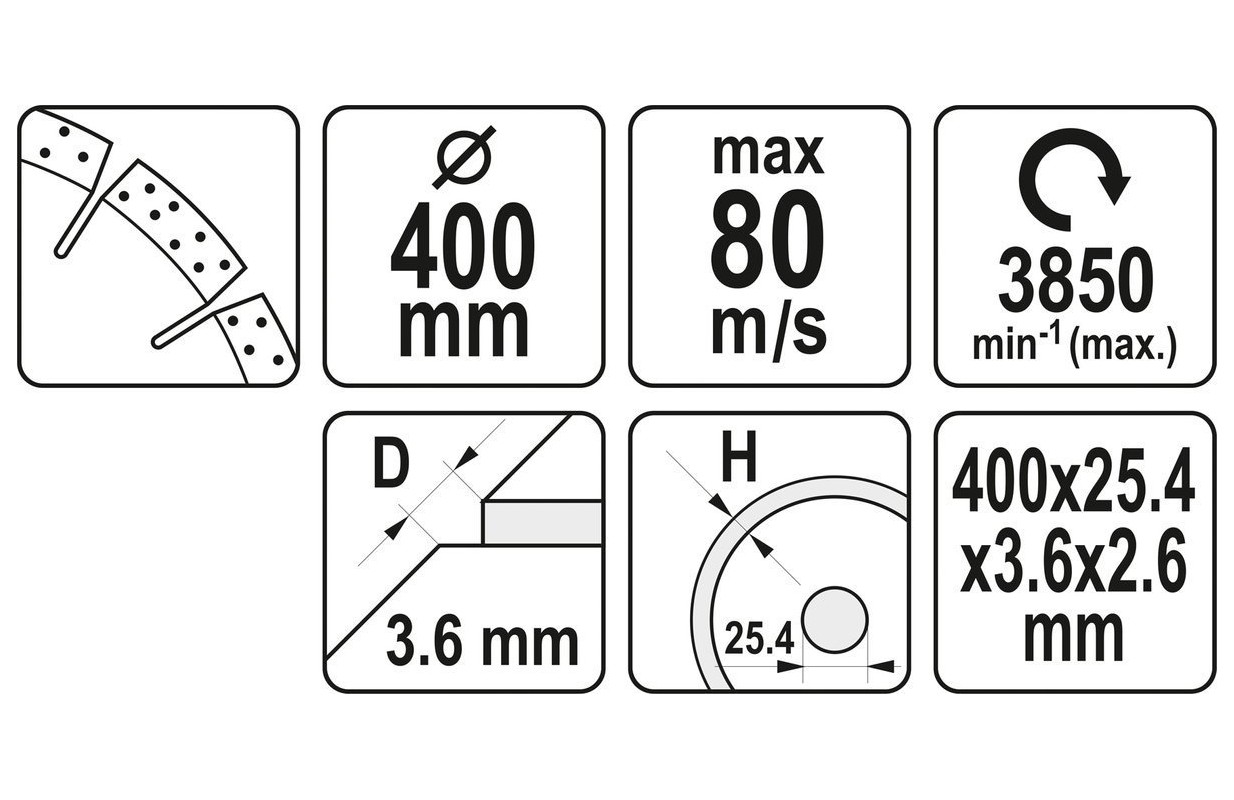 Dimanta segmentu griešanas disks | 400 x 25,4 mm (YT-60004)