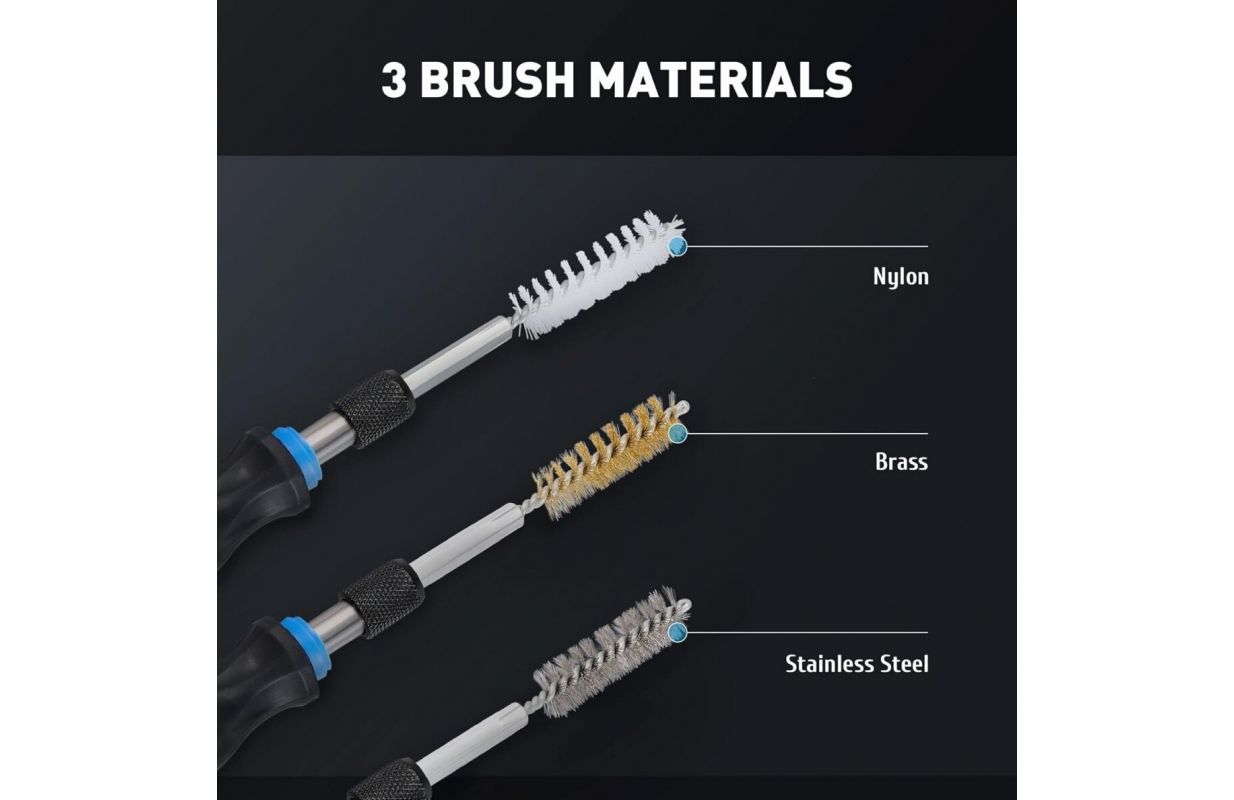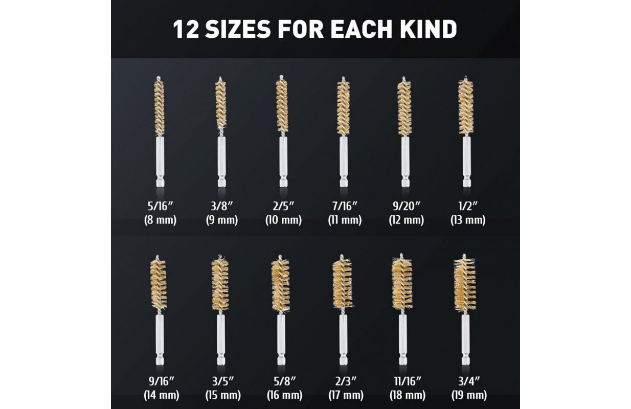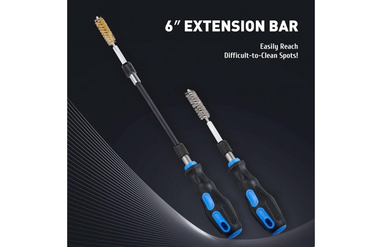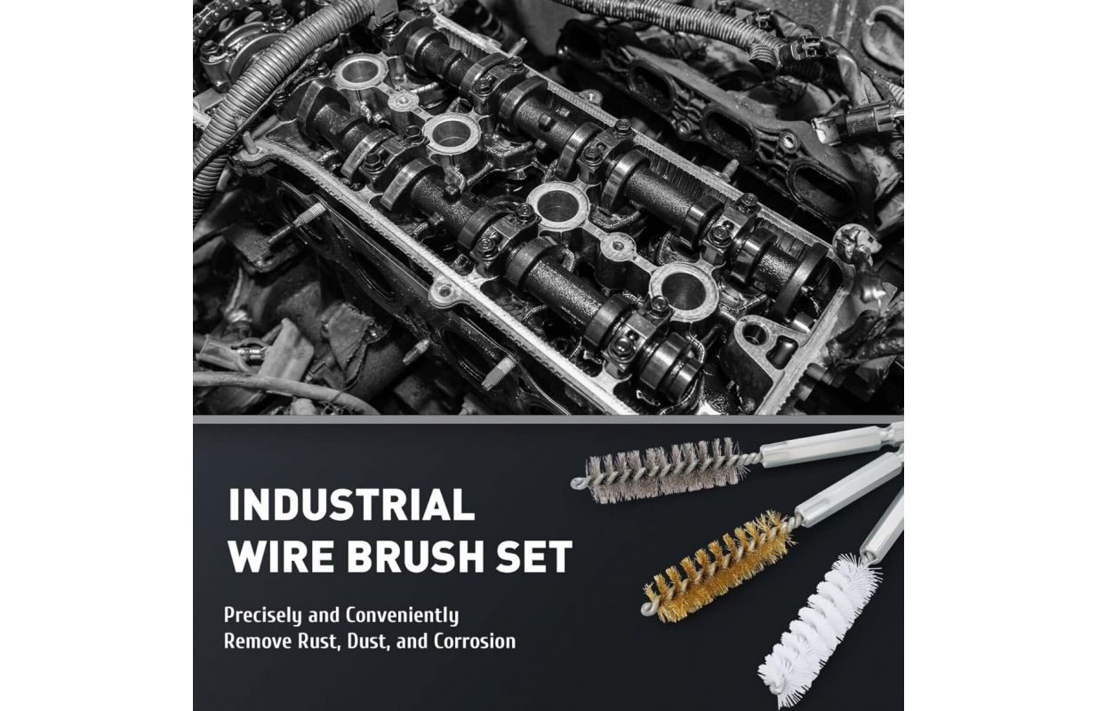 Šis tīrīšanas suku komplekts palīdzēs jums uzturēt jūsu automašīnu ideālā stāvoklī. Komplektā ietilpst rokturis, pagarinātājs un 36 sukas no neilona, misiņa un nerūsējošā tērauda dažādos izmēros. Nerūsējošā tērauda sukas ir ideāli piemērotas alumīnija, misiņa, vara, nerūsējošā un koka virsmām, savukārt misiņa un neilona sukas ir paredzētas darbam ar dzelzi, plastmasu un oglekļa tēraudu. Pateicoties komplektā iekļautajam pagarinātājam, jūs varēsiet sasniegt grūti pieejamas vietas, kur standarta rīki nevar iekļūt. Augstas blīvuma savītas sukas nodrošina ilgmūžību un vieglu nomaiņu. Plastmasas uzglabāšanas soma ir ērta pārvadāšanai.
