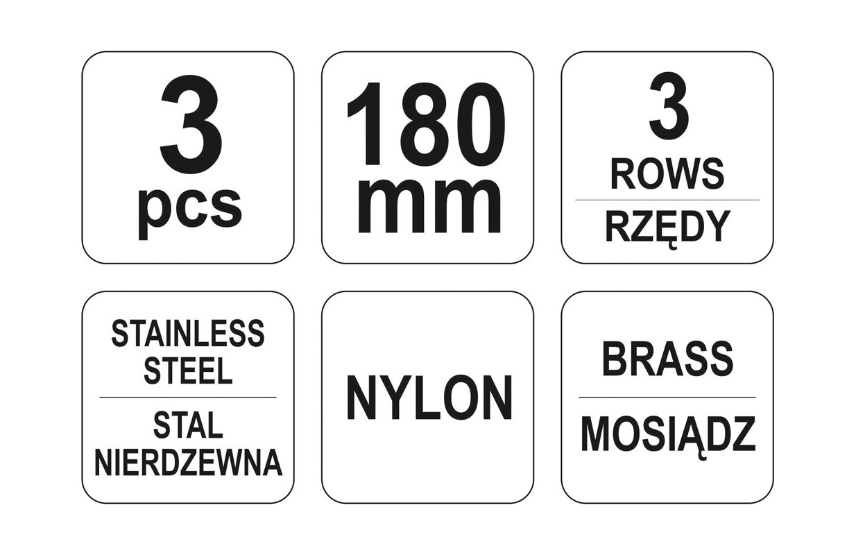 Tērauda suku komplekts ar plastmasas rokturiem. 3 gab. (YT-6351)