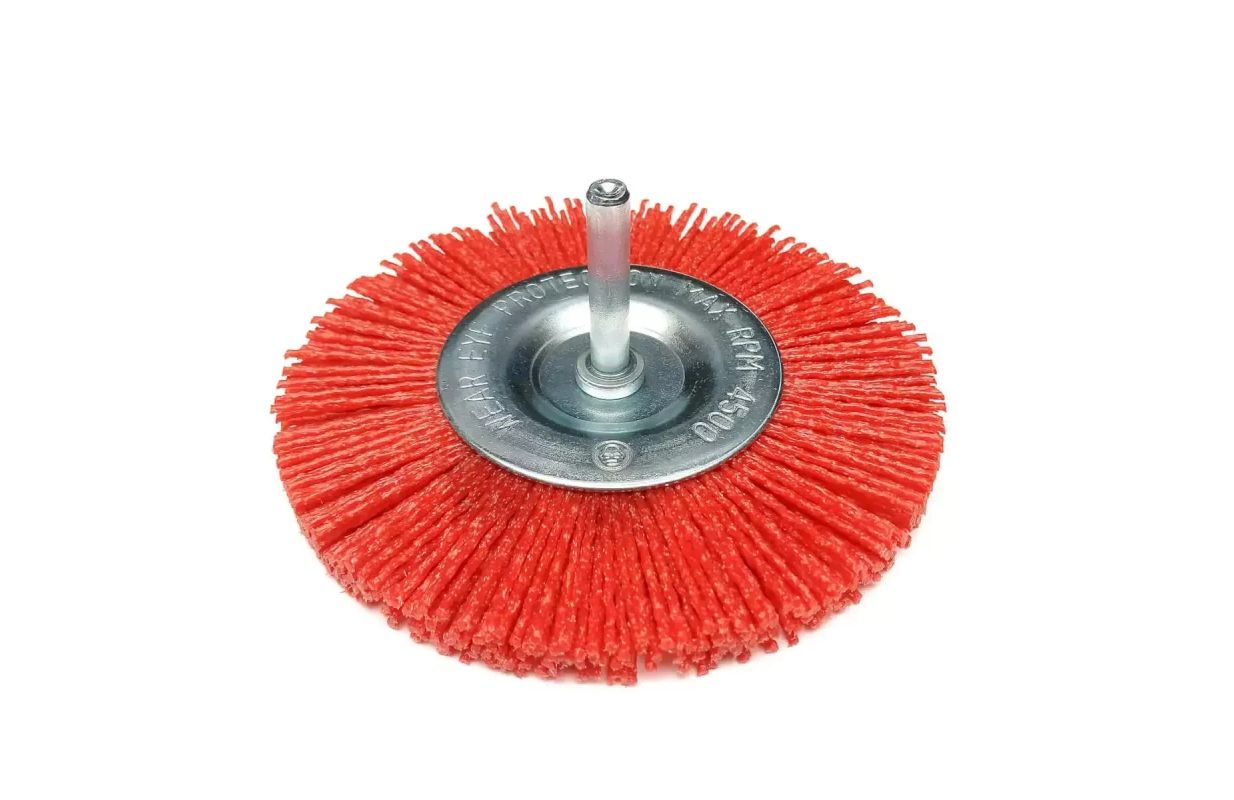 Abrazīvā riteņa birste ar uzgali tiek uzstādīta uz urbja vai skrūvgrieža un ir izgatavota no neilona sariņiem ar alumīnija pārklājumu. Birste ir izgatavota no neilona pavedieniem ar alumīnija oksīda pārkl ājumu un tiek izmantota tērauda, krāsaino metālu, vecu pārklājumu noņemšanai un koksnes novecošanai.