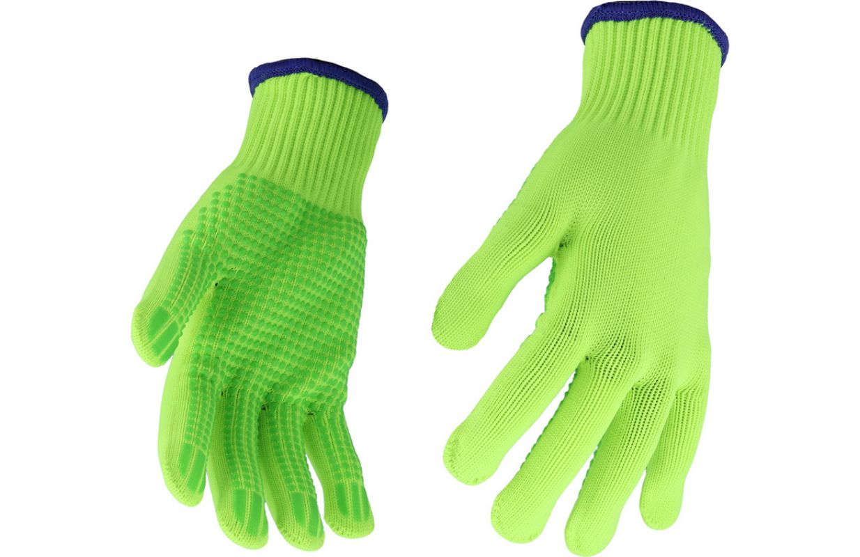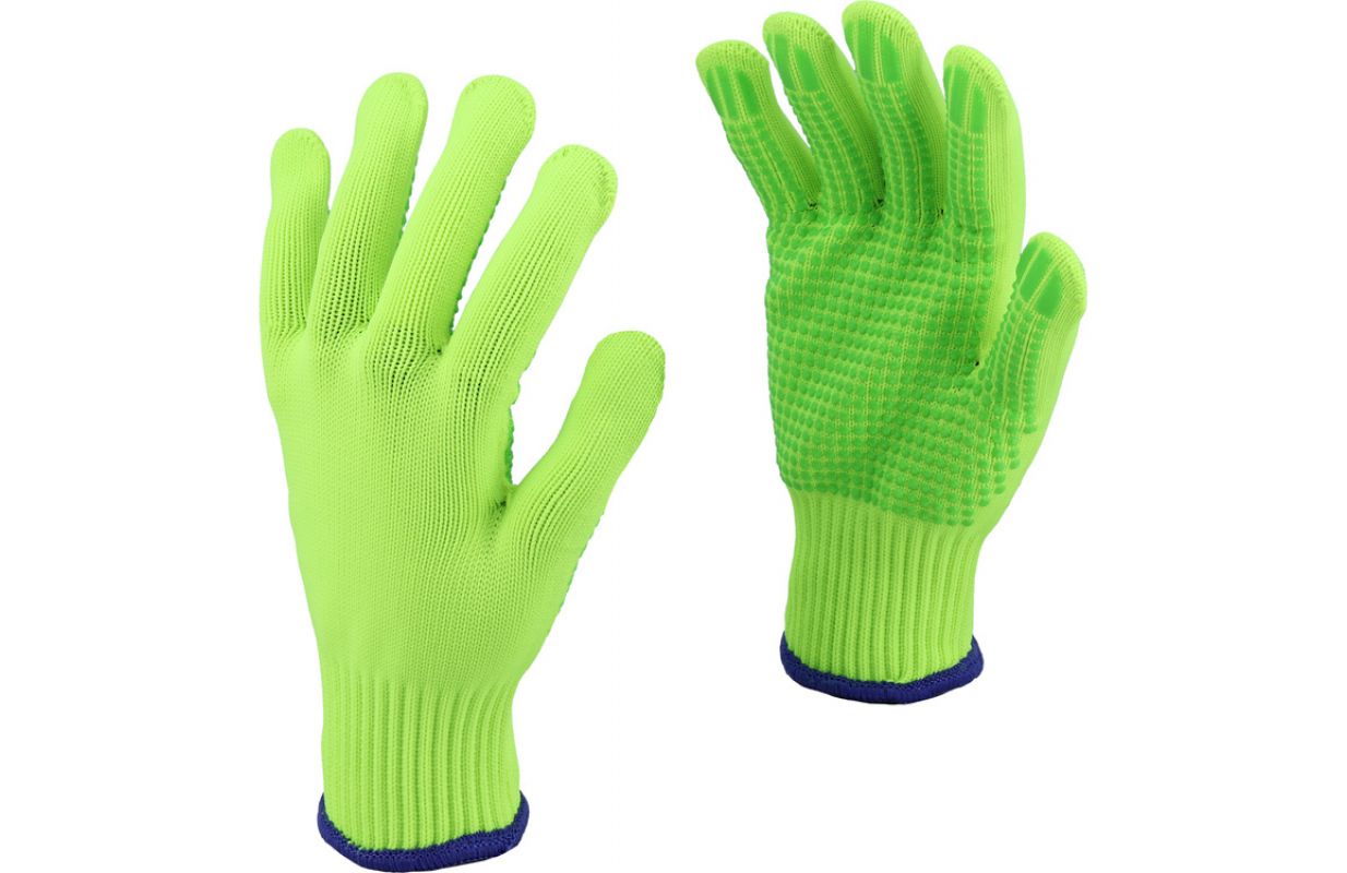 1 Kokvilnas un poliestera cimdi ar PVC raibumiem satvēriena daļā, kas uzlabo saķeri un palielina nodilumizturību. Populāri izmanto vispārējiem darbiem: mehāniskajiem