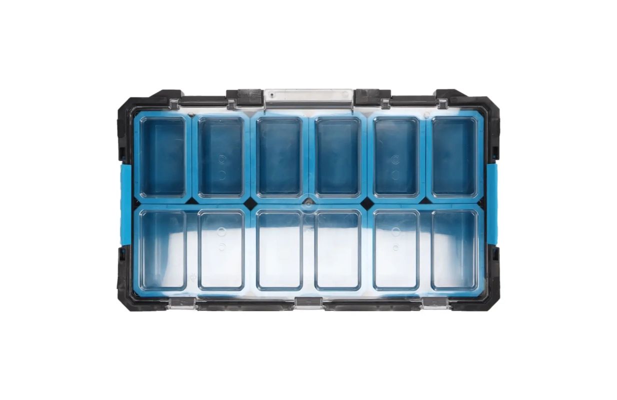 Kasetes izmēri 526x307x126 mm unietilpība 14,3 litri. Komplektā ir 9 organizatori noņemamu paliktņu veidā, kurus var pielāgot individuālām vajadzībām. Organizatori ir paredzēti mazāku piederumu, piemēram, skrūvju, uzgriežņu un bultskrūvju, uzglabāšanai.