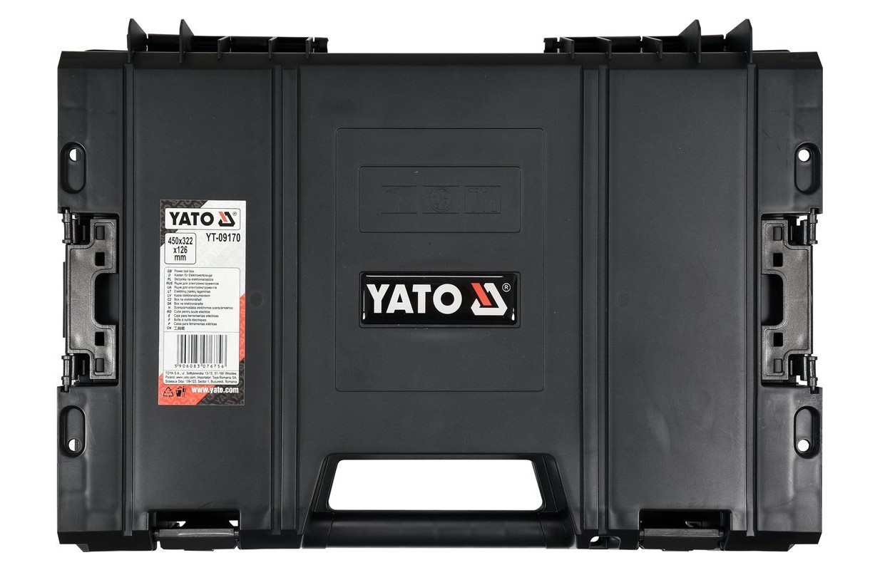 Paredzēts elektroinstrumentu transportēšanai un uzglabāšanai: urbji un skrūvgrieži, leņķa slīpmašīnas uc Paredzēts gan profesionāļiem, gan rokdarbu cienītājiem. Tas pieder YATO moduļu atvilktņu sistēmai. To var piestiprināt pie YT-09166 sistēmas bāzes kastes uz riteņiem un YT-09162 un YT-09183 atvilktnēm , kā arī otrai identiskai elektroinstrumentu kastei.