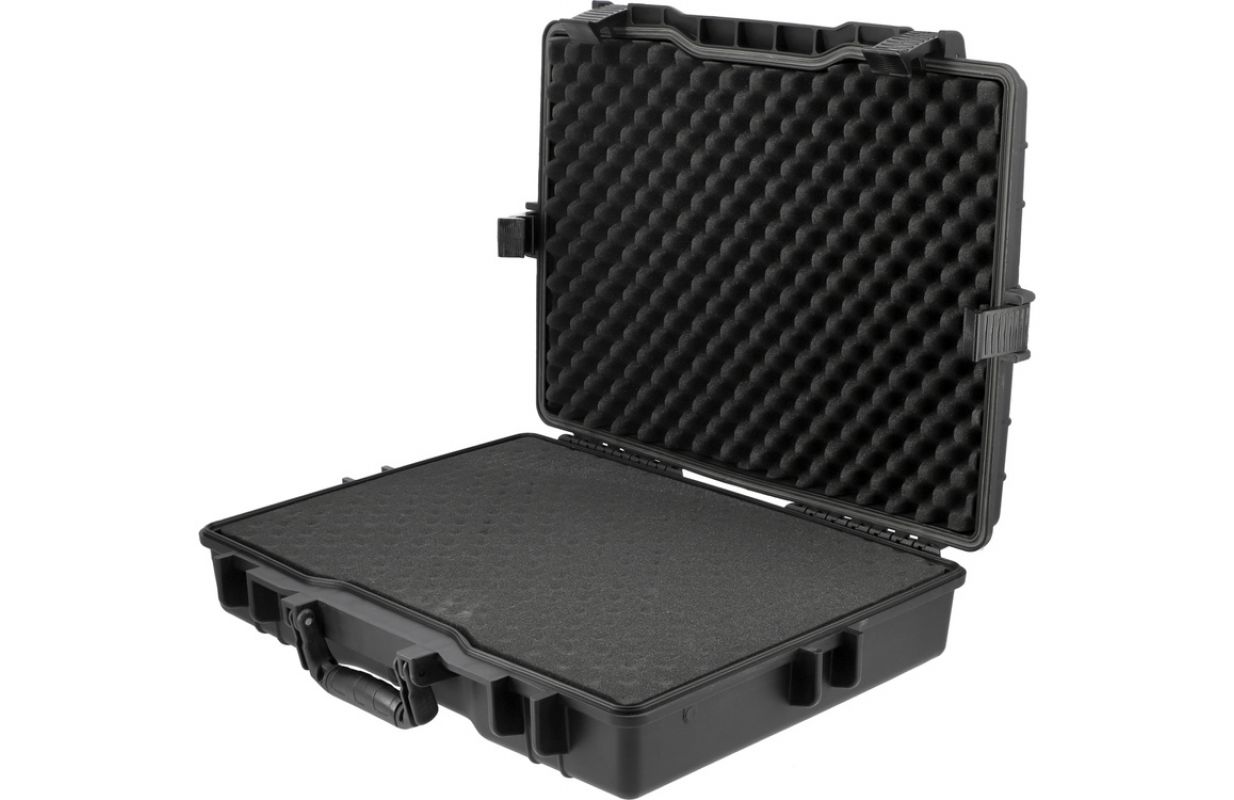 NĒ Noslēgts, ūdensnecaurlaidīgs un putekļu necaurlaidīgs čemodāns, kas ir izturīgs pret daudzām ķīmiskām vielām un koroziju. Izgatavots no elastīga polipropilēna ar IP55 pretestības klasi. To raksturo efektīva blīvēšanas sistēma, ko papildina dekompresijas vārsts, ko izmanto, lai izlīdzinātu spiedienu gaisa transportēšanas laikā. Piemērots piekaramās slēdzenes bloķēšanai. Kofera iekšpuse ir piepildīta ar iepriekš sagrieztu sūkli, kas sagatavots izstrādājumam raksturīgu padziļinājumu, piemēram, instrumentu, fotoiekārtu vai mēraparatūras, pašmodelēšanai. Izmēri: ārējie: 550x438x125 mm